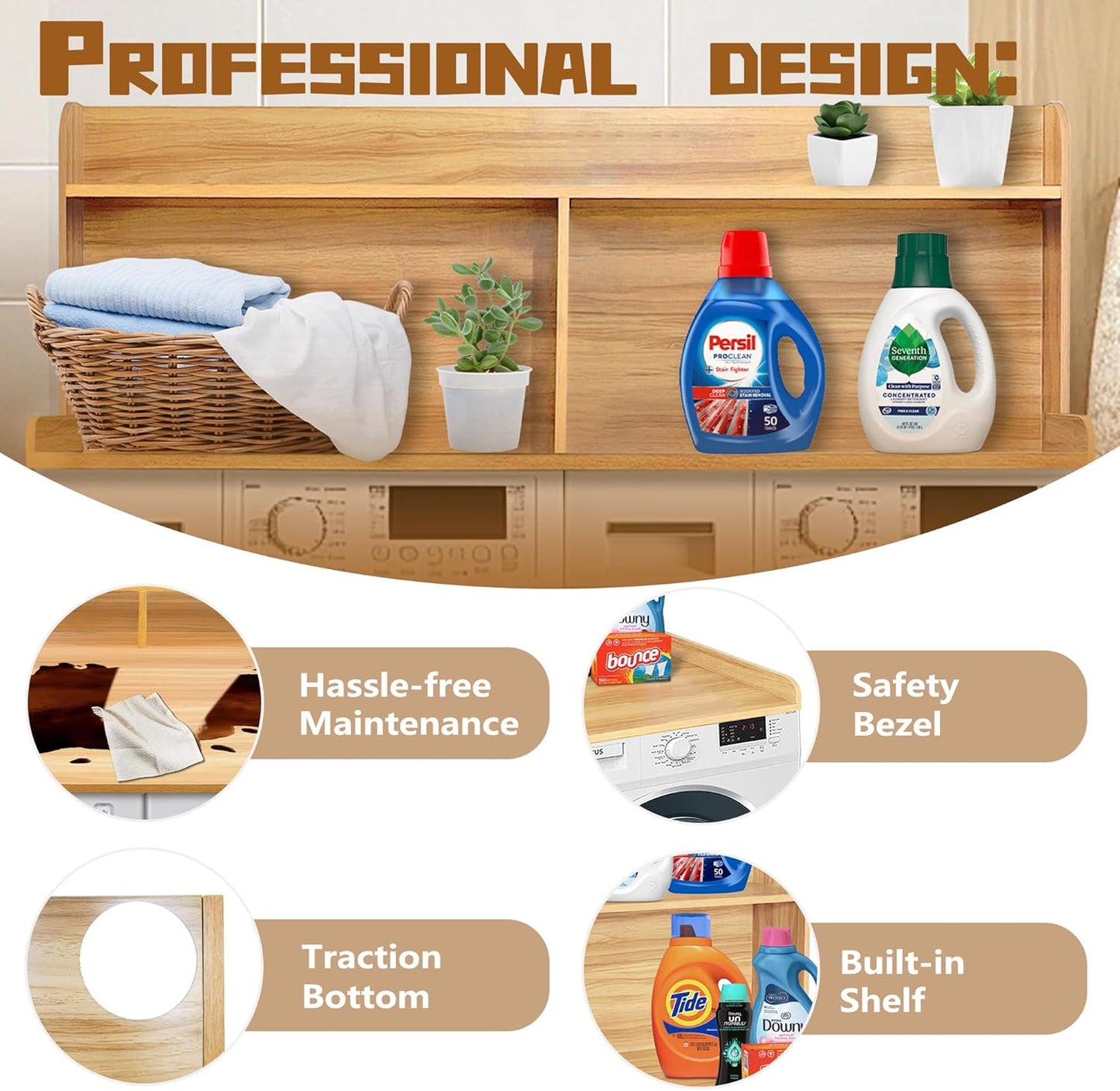 - 【Versatile and Efficient Storage Solution】Beyond serving as a base for your washer and dryer, this countertop offers exceptional storage capabilities. Its generous surface is perfect for organizing laundry essentials and functions as a convenient sorting station or even a temporary workspace. This versatile design adapts to your needs, making it an indispensable asset in your laundry room.