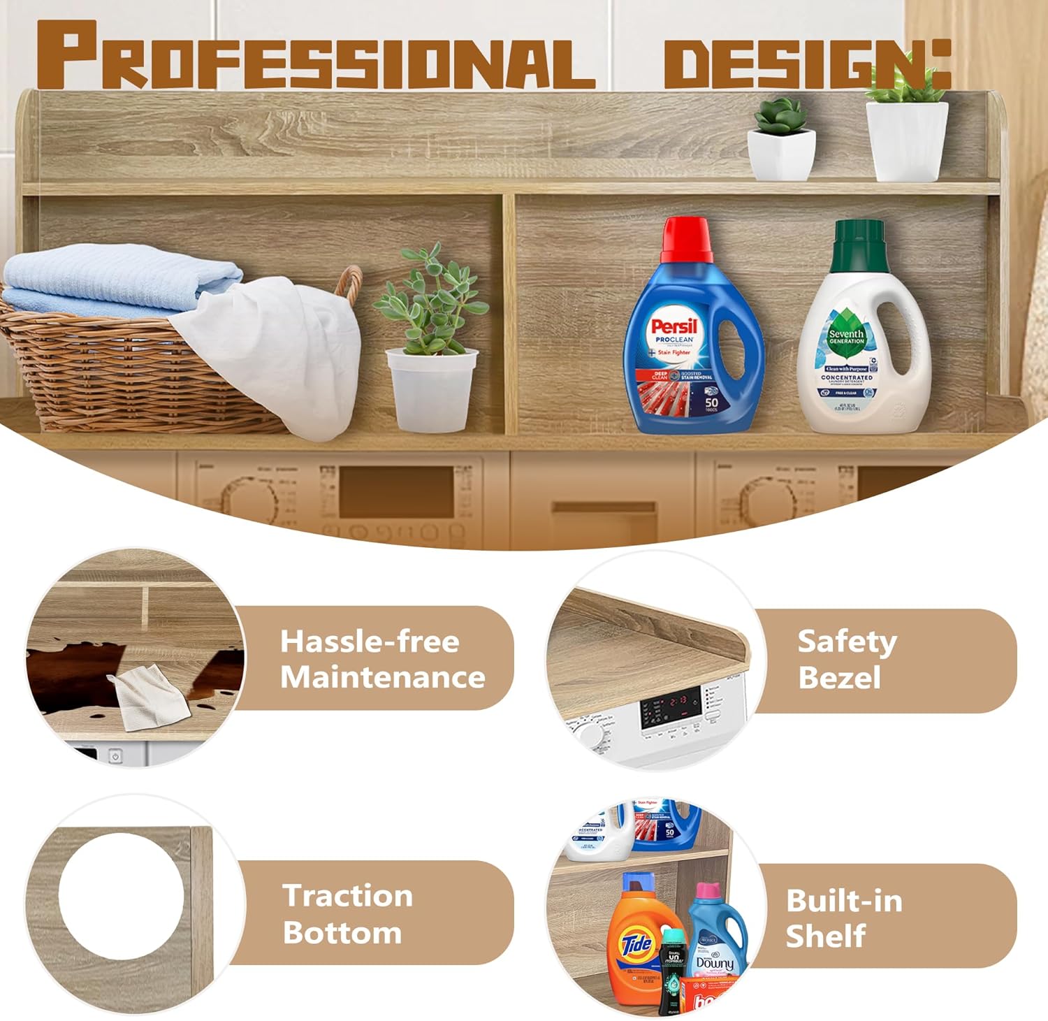 Royxen 2-Tier Washer Dryer Countertop,19.5"H Wood Washer and Dryer Topper with Shelf,Laundry Countertop Over Washer and Dryer, Universal Fit for Laundry Room Organization (White Oak, 54"W X 27.5"D)