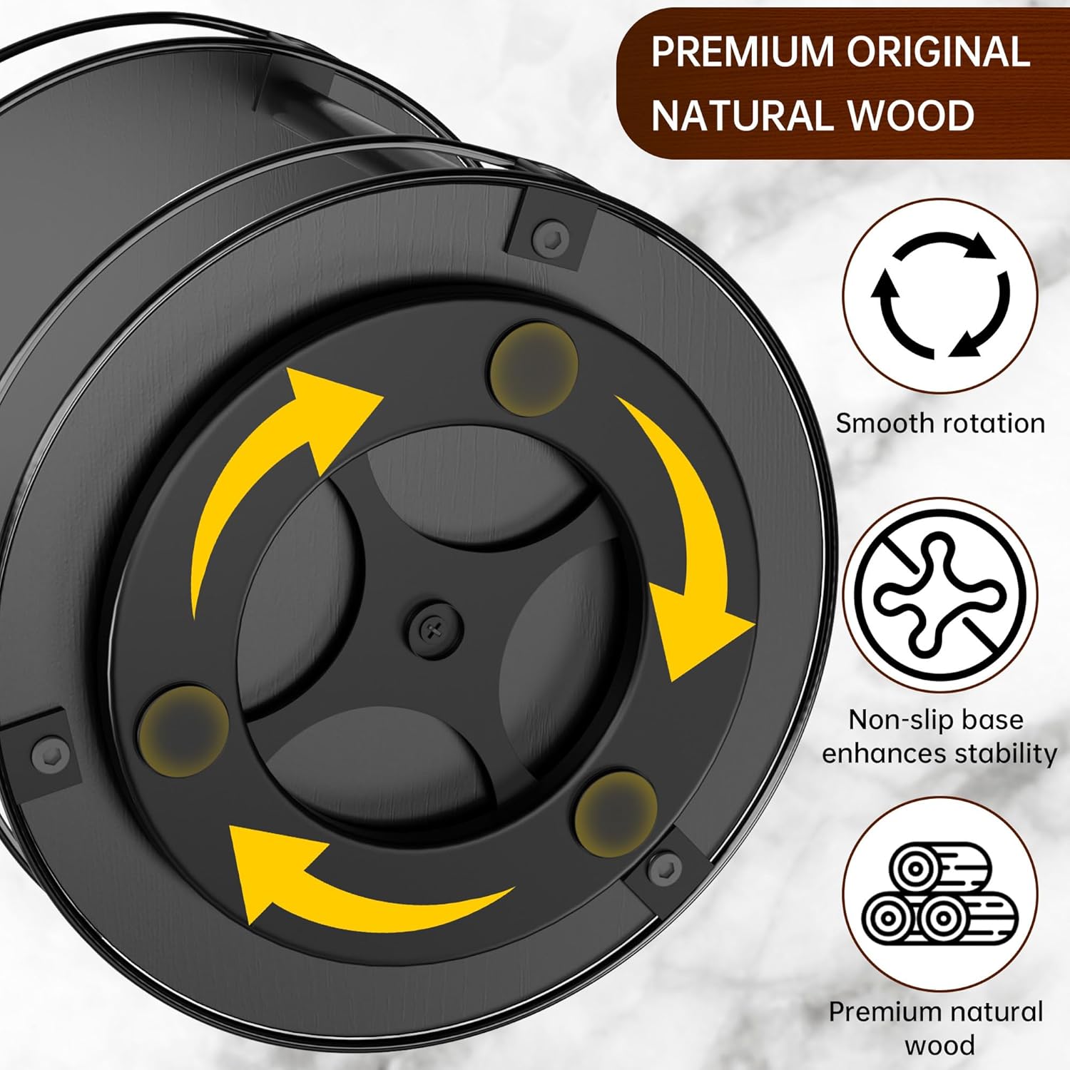 - 1. Stay Organized in Style: Ditch clutter and stay organized with our two-tier turntable Lazy Susan! This beautiful wooden rotating spice rack spinner is perfect for any table top, farmhouse bathroom decor, round decorative tray for your vanity, counter, sink, coffee table, and much more