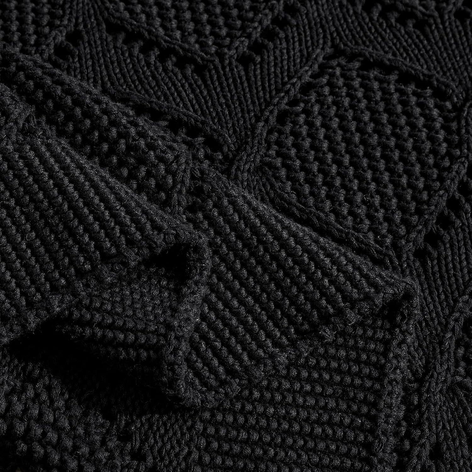 Longhui bedding Chunky Cotton Knit Throw Blanket for Couch, Sofa, Bed, or Chair, Decorative Breathable Fall Cable Knit Blanket 60 x 80 Inches, Large Black
