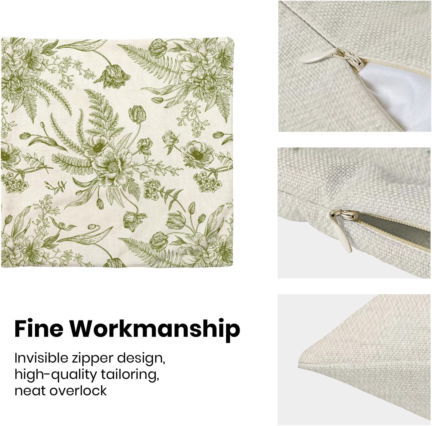 - 【Spring Pillow Covers】 Our Chinoiserie floral throw pillow covers 16x16 inch are made of excellent breathable polyester cotton fabric. The green and White floral decorative pillow covers is sturdy, soft and skin-friendly. The plant outdoor pillow covers adopt exquisite edging technology and four sides of our floral pillow covers are sewn firmly, which is not easy to open the line.