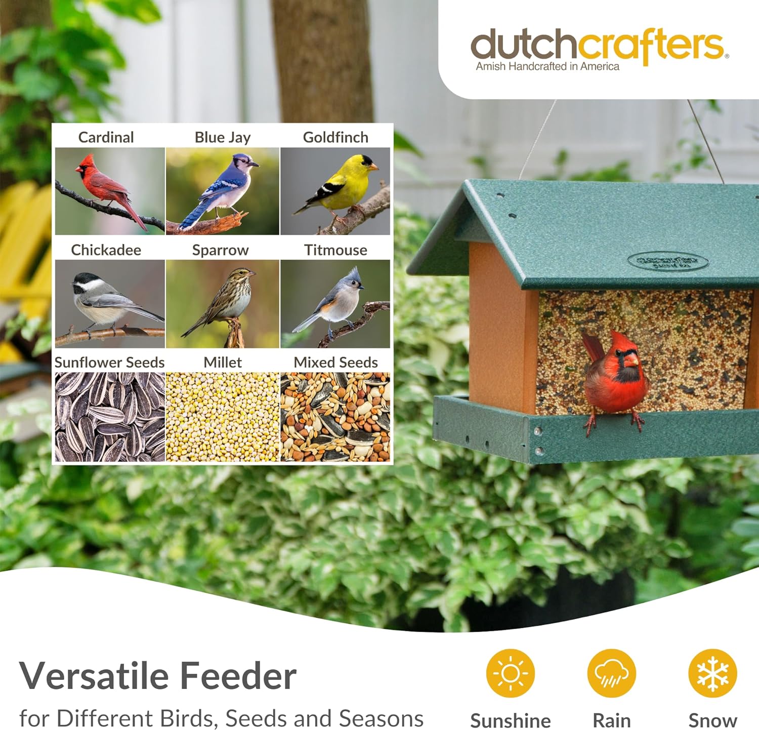 Poly Hanging Hopper Bird Feeder, Large Hanging Bird Feeder for Outside, Outdoors - Amish American Made (Turf Green & Cedar)