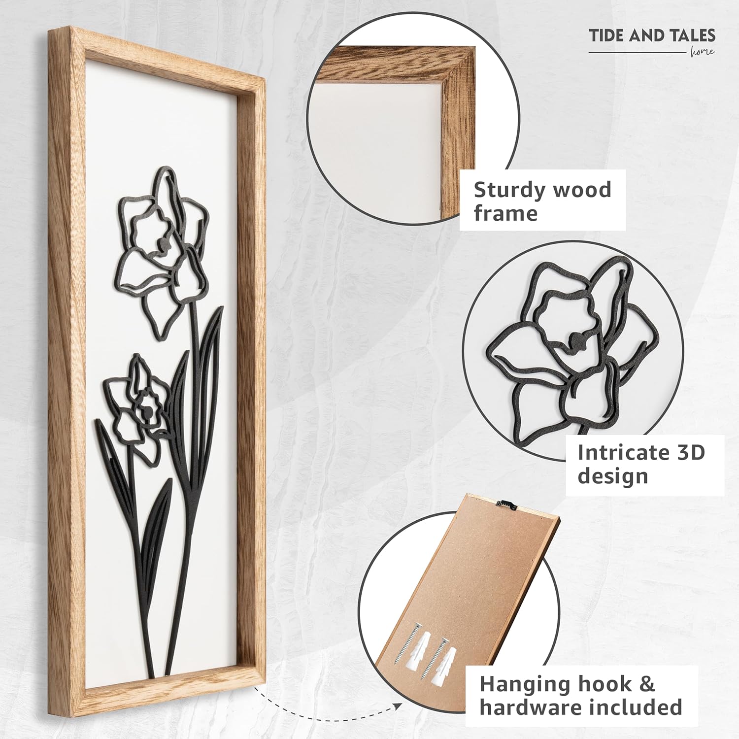 - Unique 3D Floral Cutout Design – This elegant 2 piece set features raised wooden floral cutouts that add texture and depth, setting your new decor apart from the usual prints and pictures. Designed with black and white colors that are easy to style.