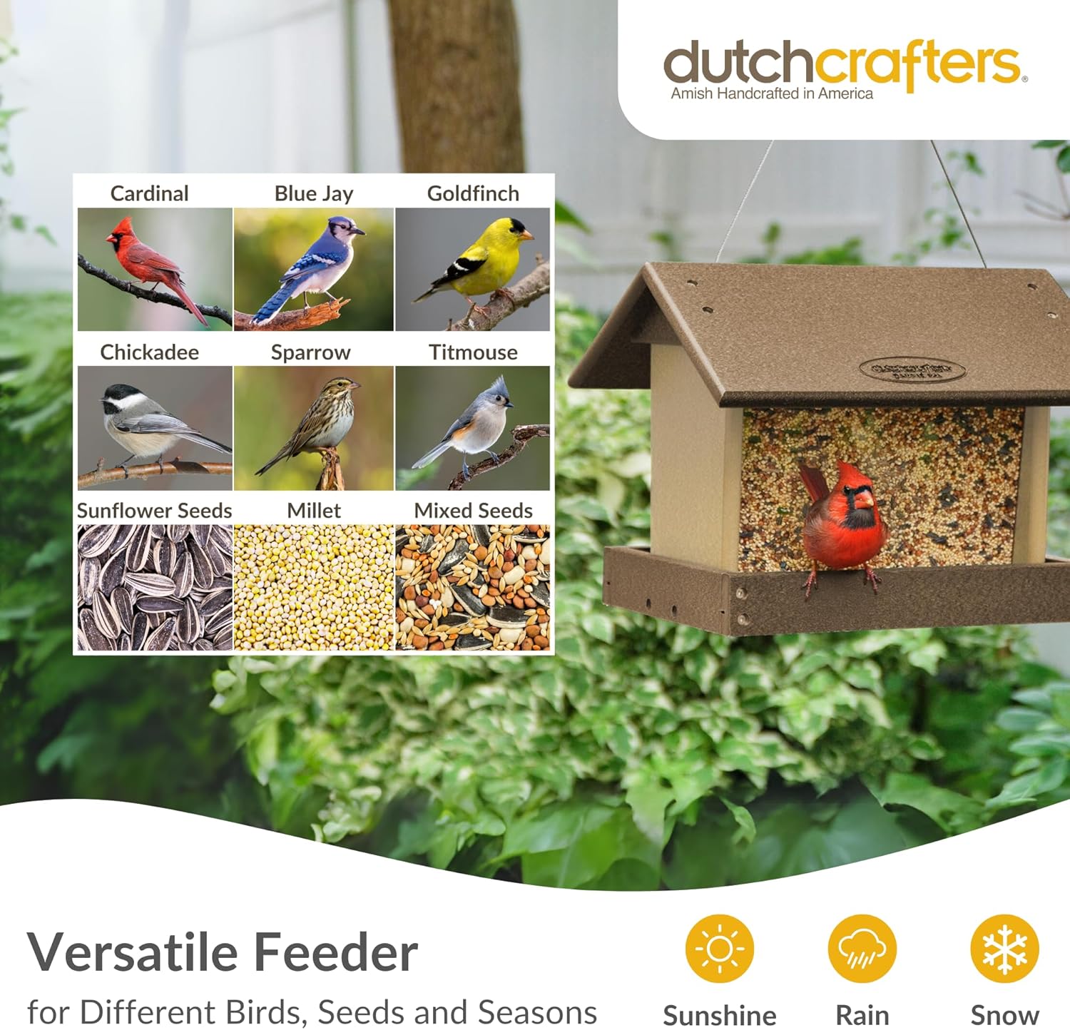 Poly Hanging Hopper Bird Feeder, Large Hanging Bird Feeder for Outside, Outdoors - Amish American Made (Tudor Brown & Weatherwood)