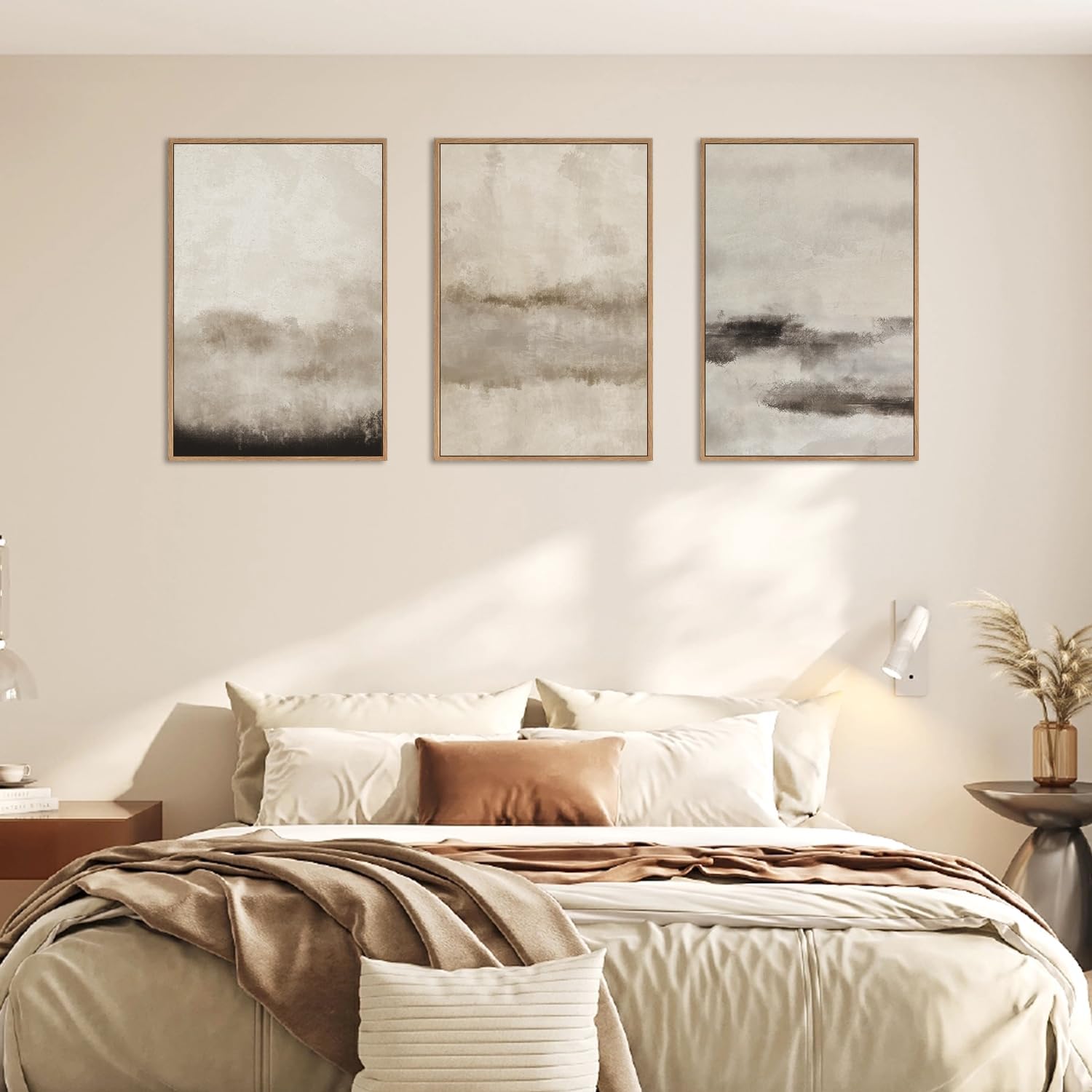 HPINUB Large Abstract Framed Canvas Wall Art Set,Minimalist Beige Gray Pastel Watercolor Wall Decor,Modern Illustration Neutral Art Painting for Living Room,Bedroom,Dining Room,Office -24"x36"x3
