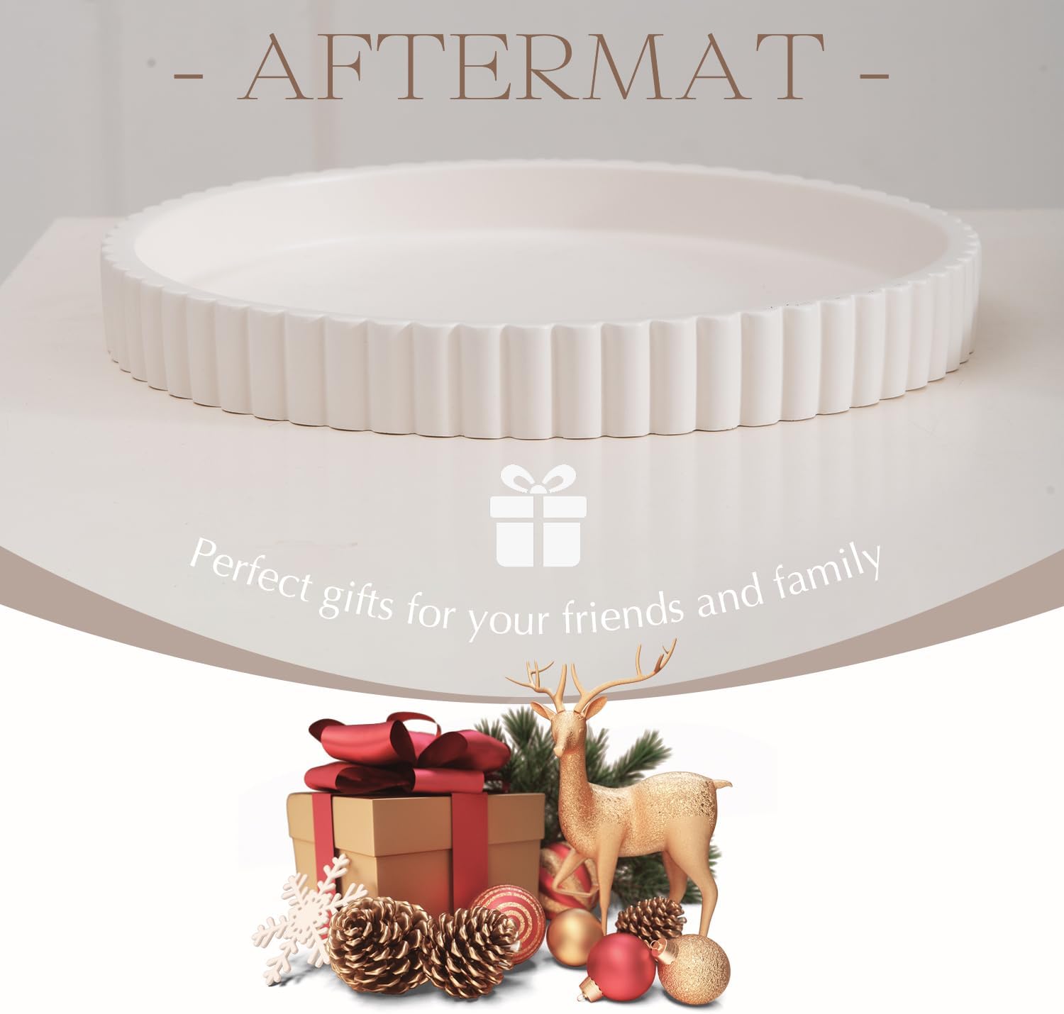 - Timeless Aesthetic: Inspired by clean Scandinavian design elements, it's a neat little solution to keep everything in check. The grooved concrete bestows upon the AFTERMAT tray a sense of modern elegance, harmonizing exquisitely with understated home décors.
