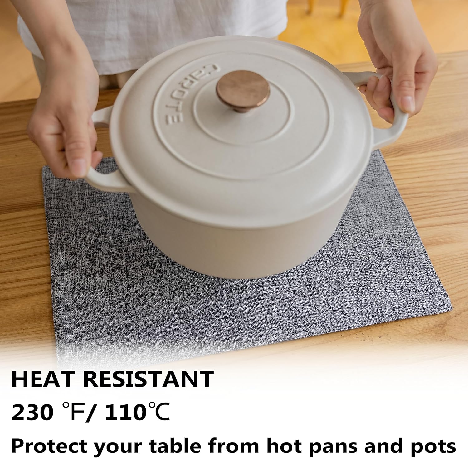 - Premium Fabrics: Our place mats are made of faux linen fabric, eco-friendly and durable placemats with exquisite workmanship which can be used for a long time. Not waterproof and liquid can go through placemats.