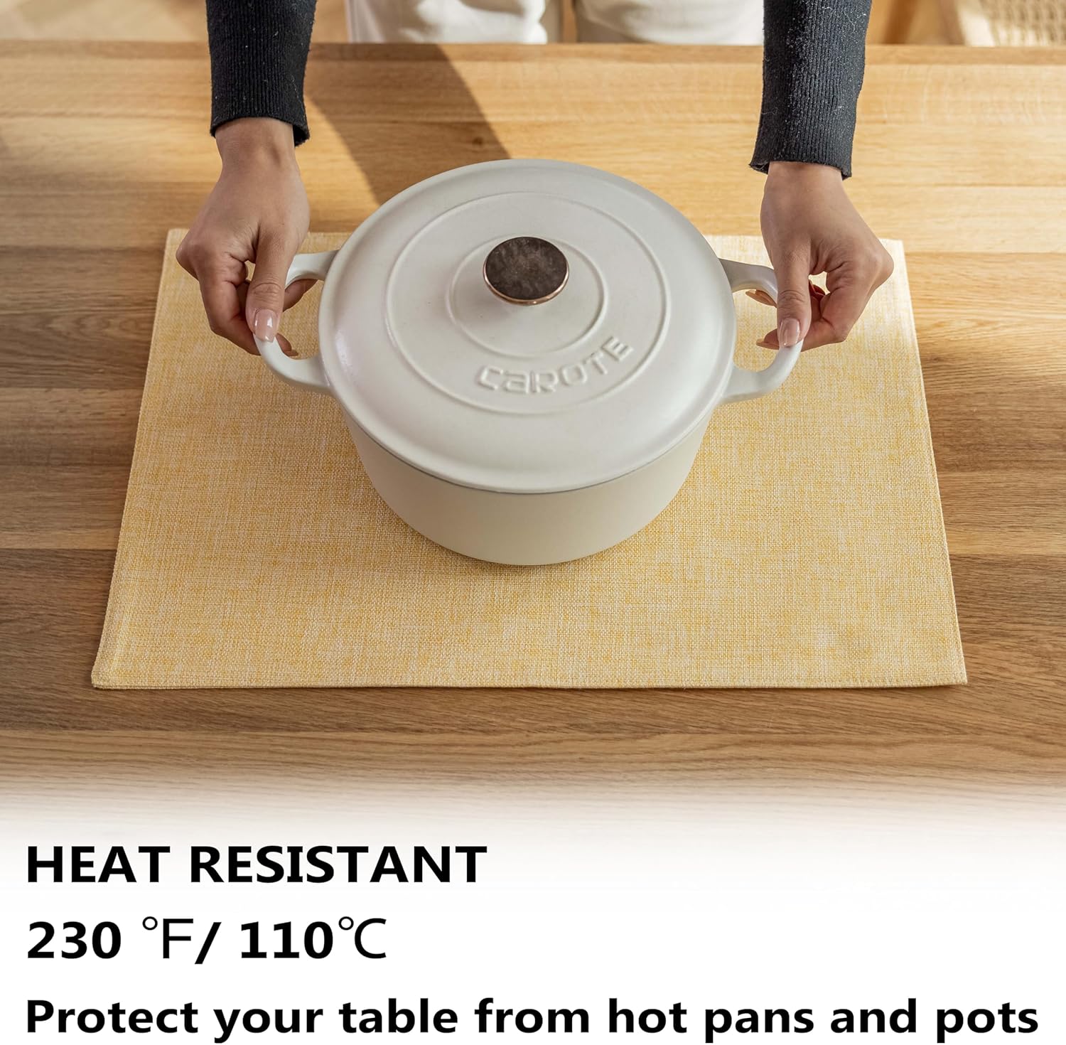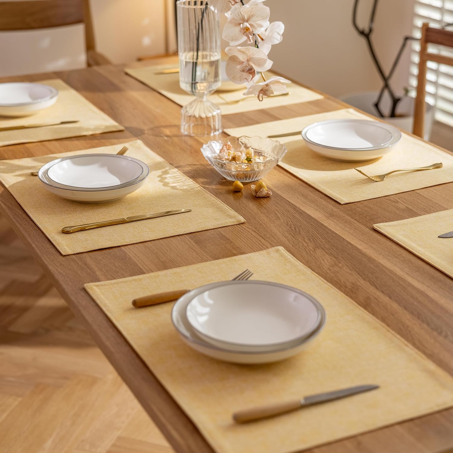 Demetex Yellow Placemats Set of 8 Linen Fabric Placemat Heat Resistant Washable Place Mats for Kitchen Party Dinner, 13x19 inch, Yellow