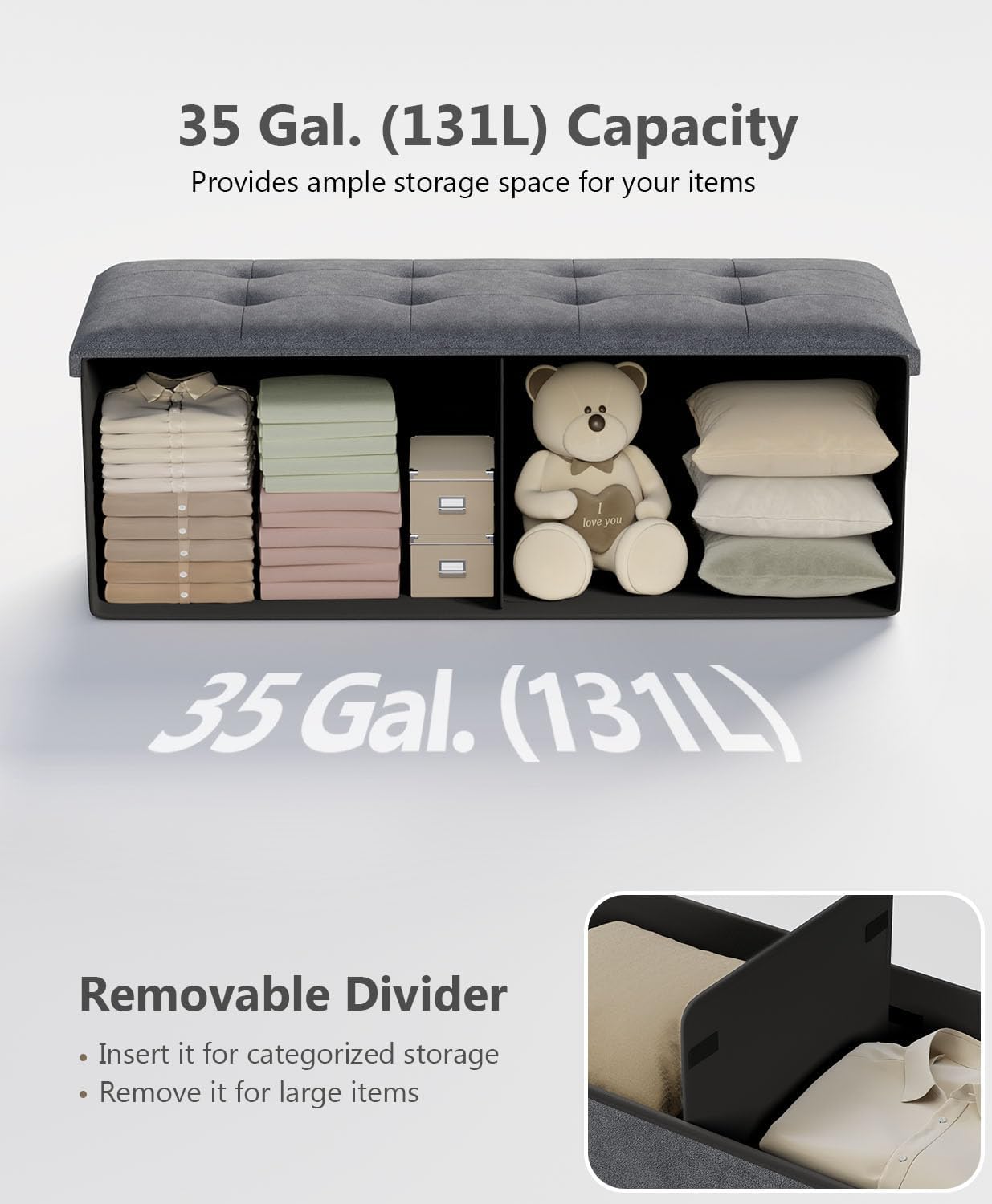 - [Comfortable Seating] Filled with high-density foam and covered in linen-look fabric, this storage bench provides a soft, supportive, and breathable seat for optimal comfort