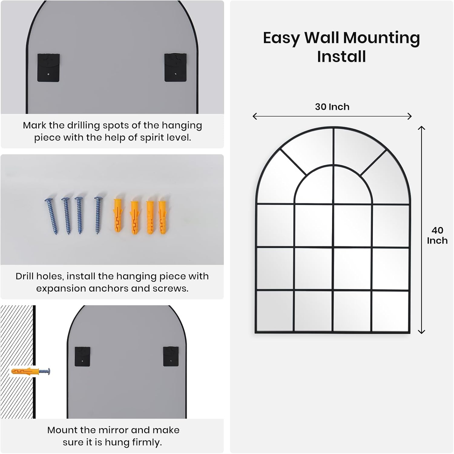 - Easy Two Ways Install in Various Home Spaces: No assembly required, hang on the wall, lean against the wall, widely used as a wall decorative mirror in living room,dinding room, bedroom,hallway and entrance