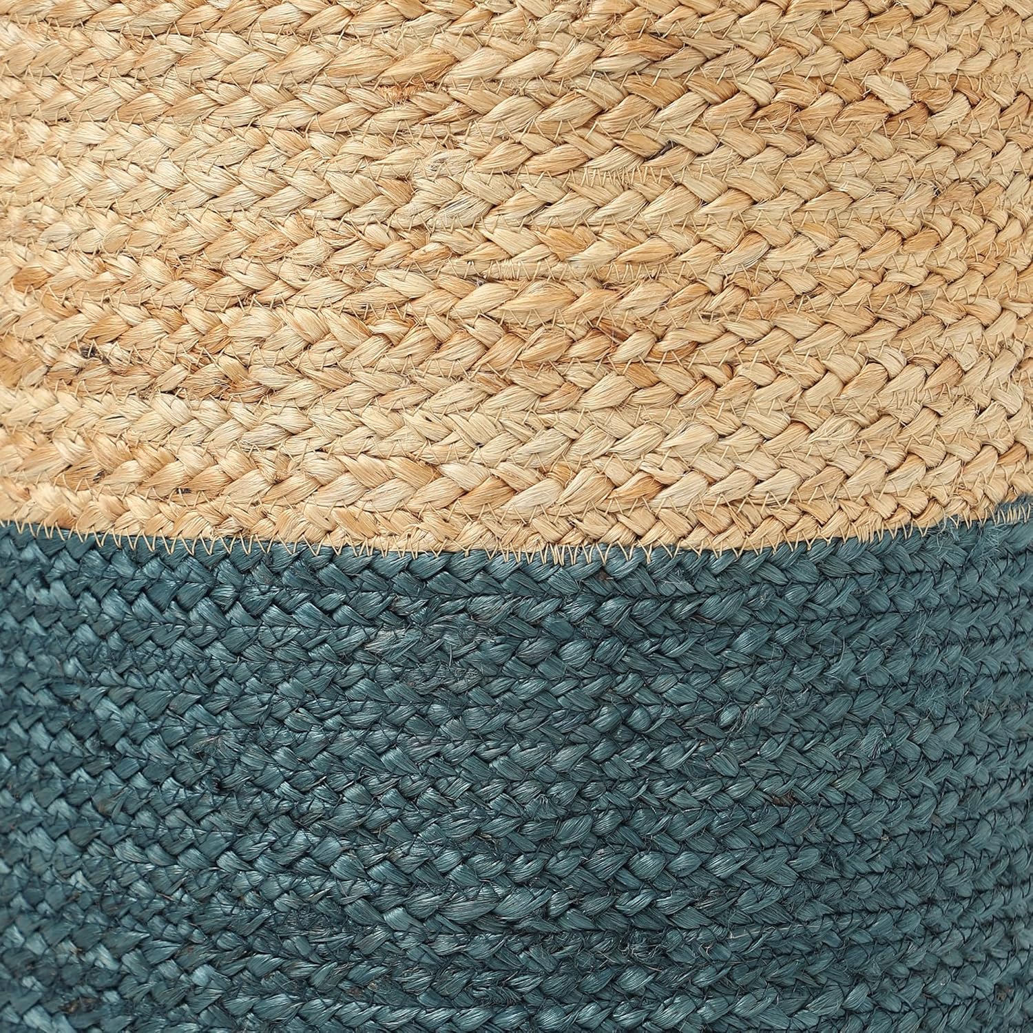 REDEARTH · Cylindrical Pouf Foot Stool Ottoman - Jute Braided Pouffe Poof Accent Sitting Footrest for Living Room, Bedroom, Nursery, Patio, Lounge Set of 2 (Natural Teal, 14.5"x14.5"x16")