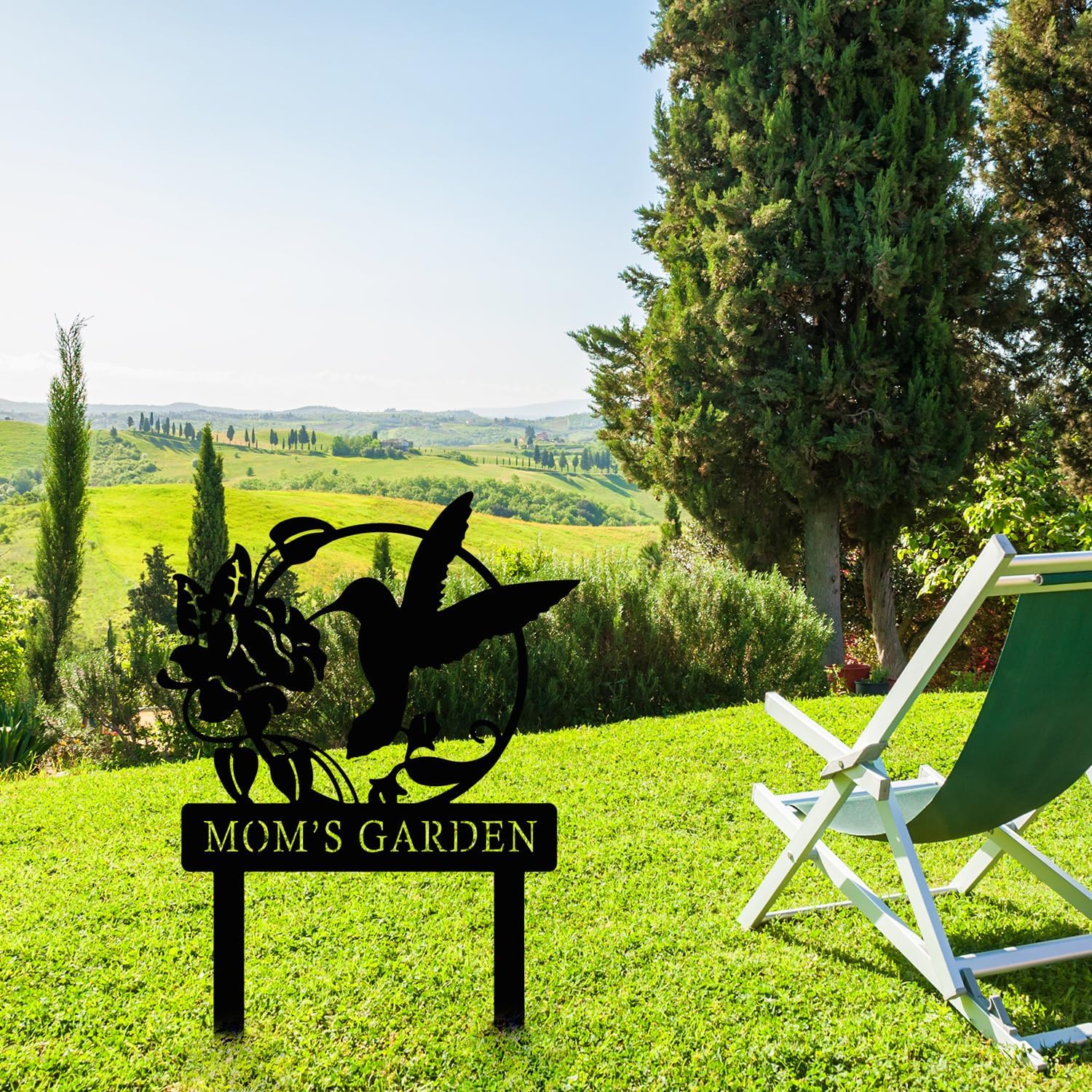 Personalized Metal Sign with Stake, Custom Hummingbird Garden Sign for Outdoor, Patio, Farmhouse Decoration, Lawn Yard Art, Bird Flower Garden Decor