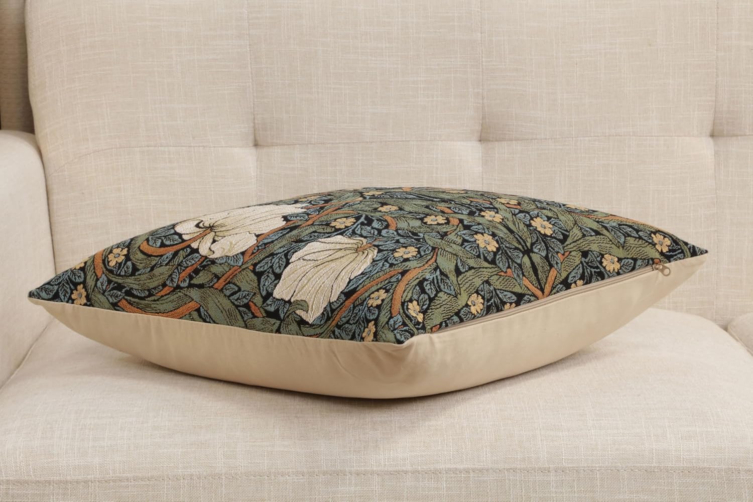 - BOTANICAL ELEGANCE IN BLUE-GREEN: Add artistic depth to your home with this 18" x 18" floral pillow cover, showcasing Pimpernel blooms in cool blue-green tones. The classic William Morris-style tapestry print lends serene sophistication to sofas, beds, or cozy reading nooks.