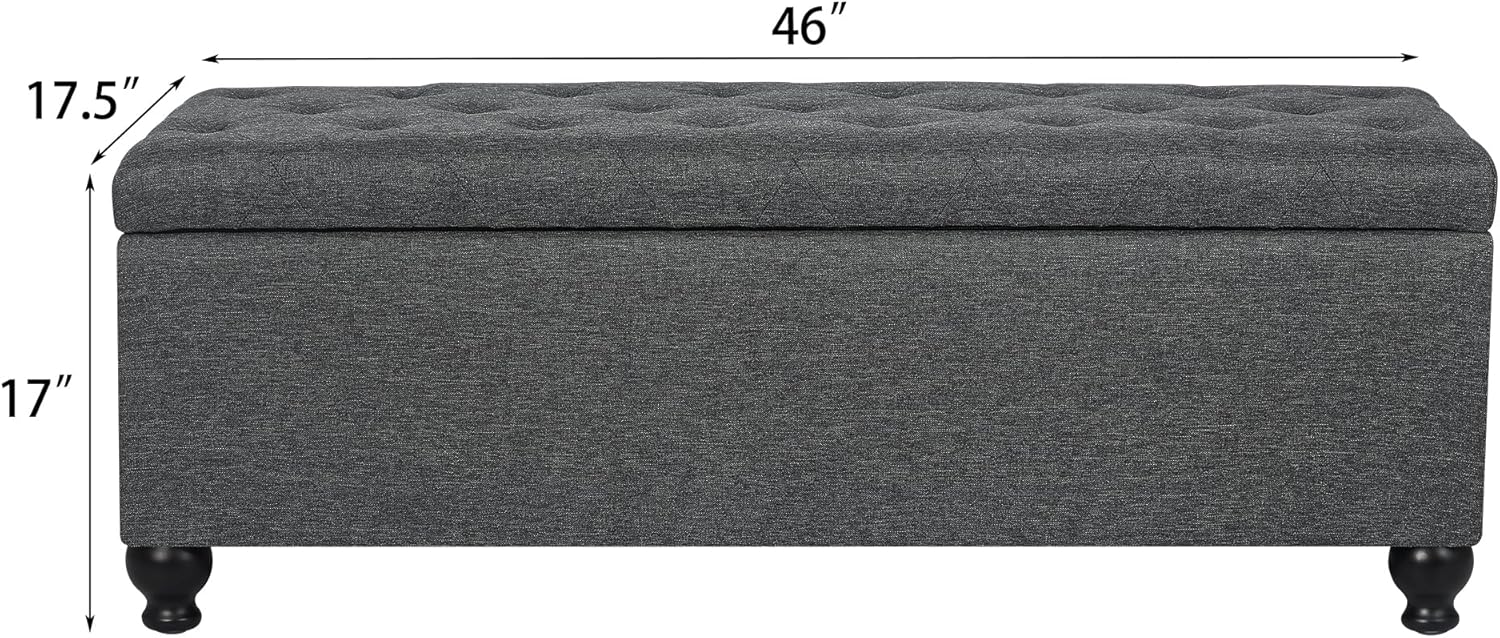 Storage Ottoman Bench 46 Inch Ottoman Bench with Storage Fabric Tufted Benches for End of Bed, Upholstered Ottomans Benches King Size with Hinged Lid for Living Room Bedroom Dark Grey