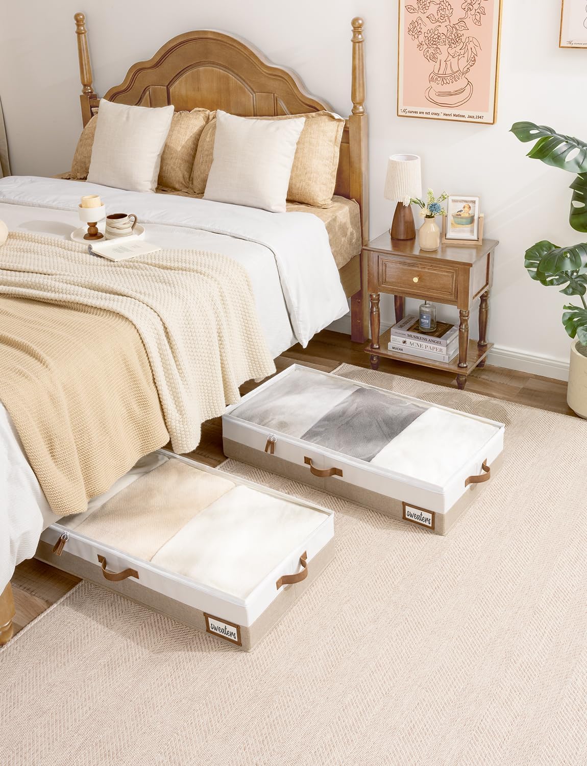 StorageWorks Large Under Bed Storage Containers with Handles and Label Holder, 2 Pack Ultra-thick Fabric Underbed Bins, Closet Organizer for Clothes, Blankets, Sweater