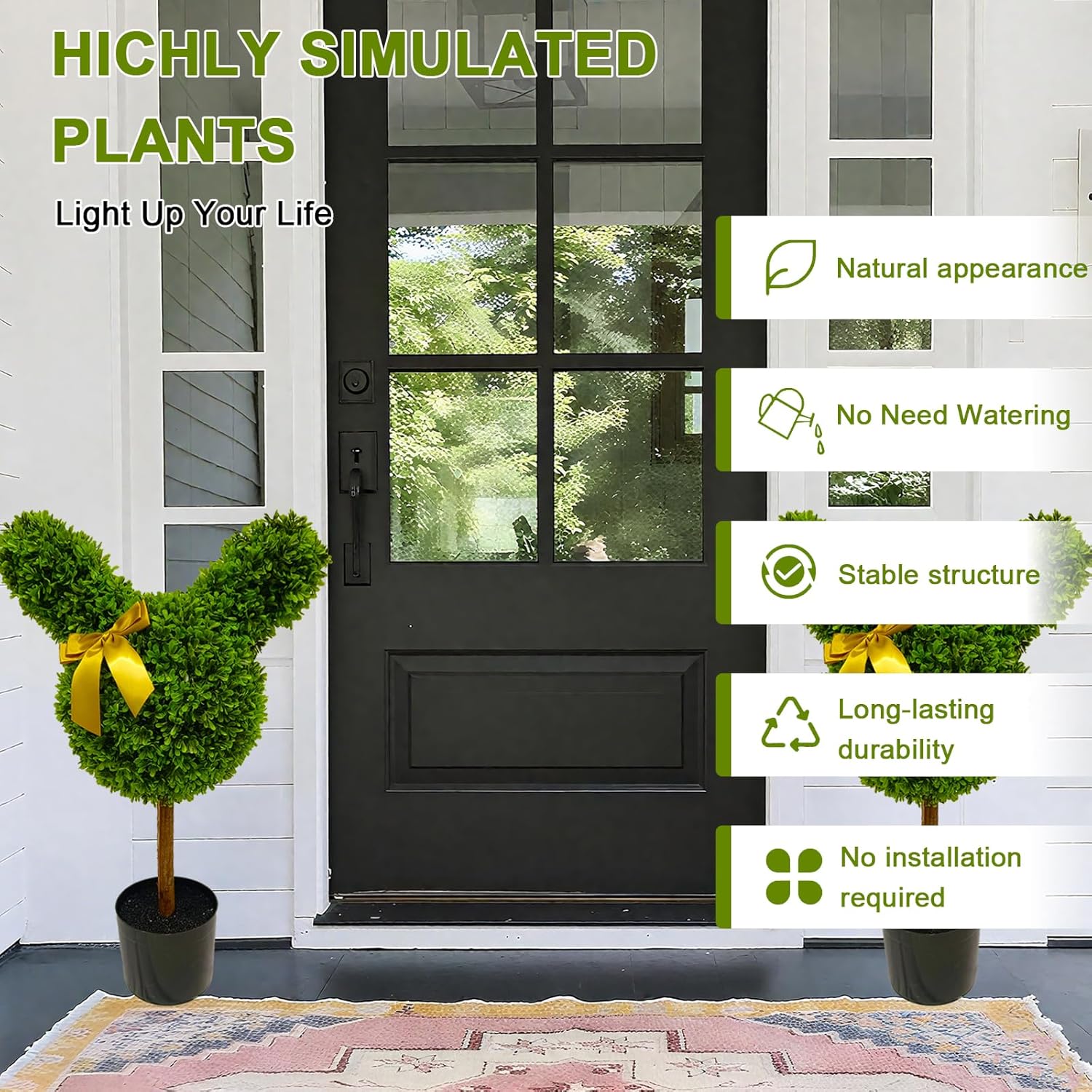 - 【High-Quality Materials】These topiary trees is made of plastic, which is sturdy and durable. all without a strong plastic smell.That look incredibly real. They're built to withstand the elements, ensuring vibrant color and charm year-round.