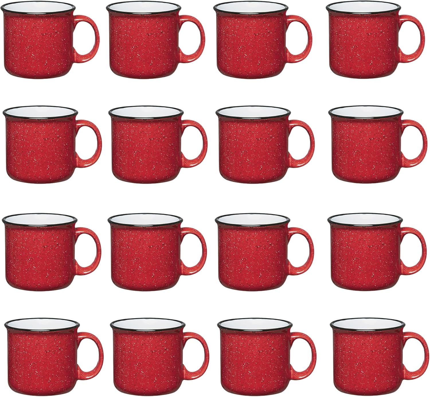 Set of 16 Ceramic Campfire Mugs – 15 Oz, Red – Coffee & Tea Cups for Home, Work, Travel, Camping – Customizable, Great for DIY, Events, Companies
