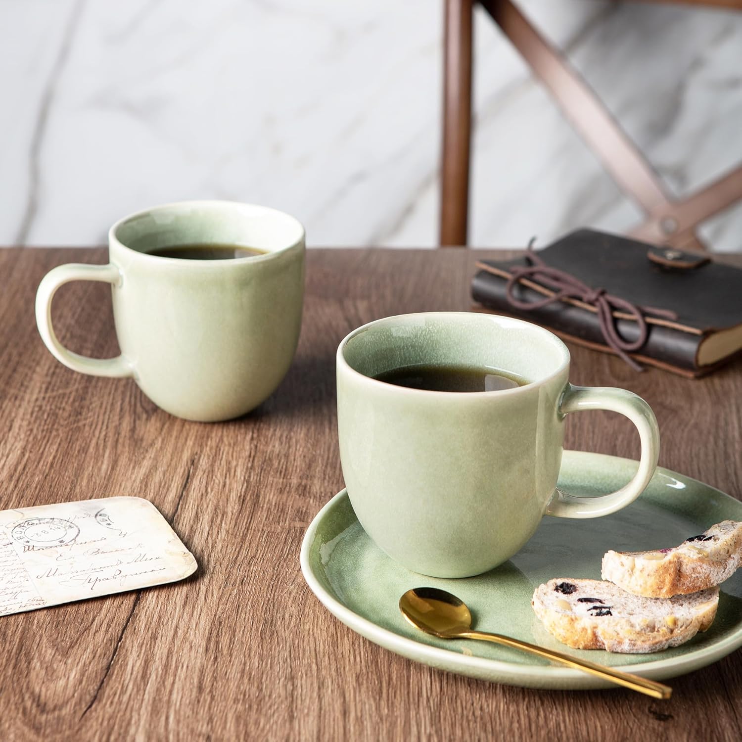 AmorArc 12oz Coffee Mugs, Ceramic Coffee Mugs set of 6 for Man, Woman, Dad, Mom, Modern Coffee Mugs with handle for Latte/Cappuccino/Milk/Cocoa. Dishwasher&Microwave Safe, Olive Green