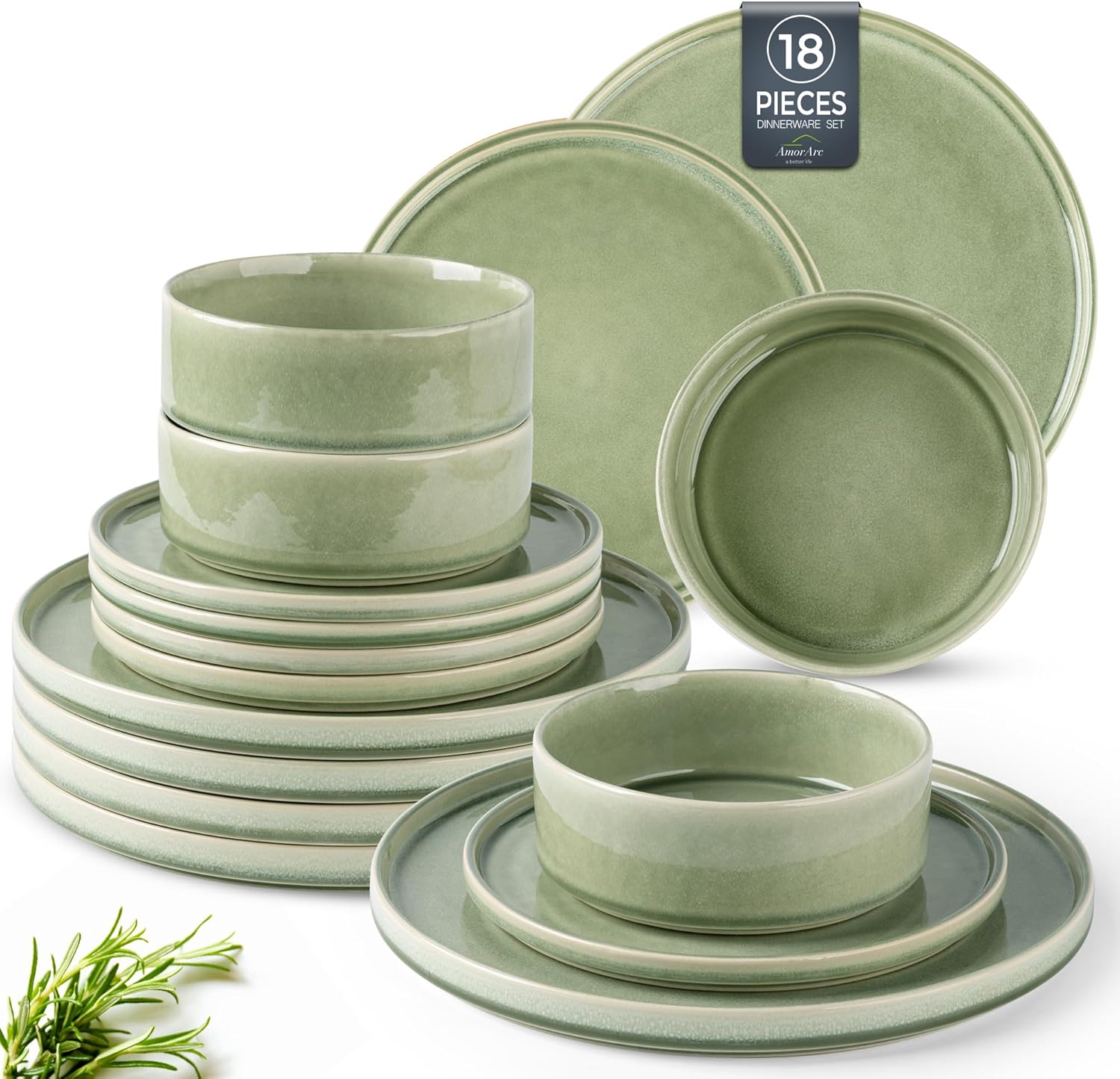 AmorArc Ceramic Dinnerware Sets, Handmade Reactive Glaze Stoneware Plates and Bowls Sets,Highly Chip and Crack Resistant | Dishwasher & Microwave Safe Dishes Set, Service for 6 (18pc)
