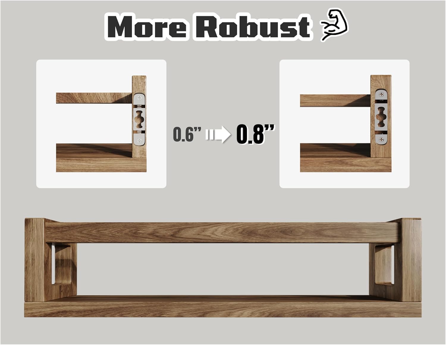 - 【Premium Solid Wood Craftsmanship】Experience the charm and durability of 100% solid wood. Our upgraded floating shelves feature thicker side panels (upgraded from 0.6 inches to 0.8 inches) to ensure superior stability and enhanced durability, bringing a touch of nature and health to your home environment.