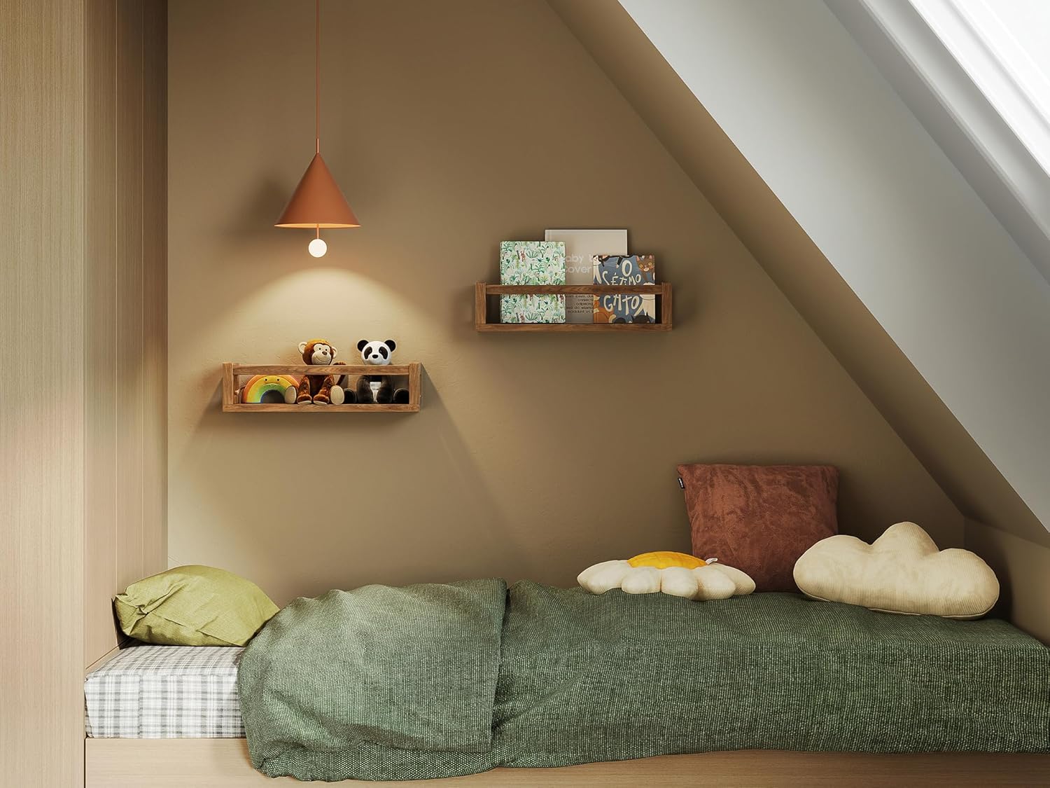 Upgraded Thick Floating Shelves - Multi-Use Wall-Mounted Bookshelves for Kids and Nursery, Ideal for Books, Toys, Spice Rack, Decor - Walnut Brown