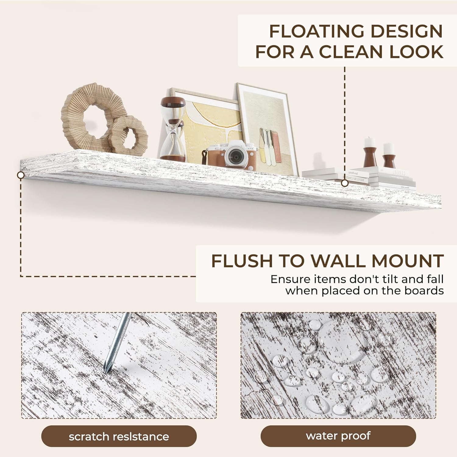 RICHFOCUS 72Inch Floating Shelves for Wall 2 Pack Shelves for Bedroom|Kitchen|Bathroom Wall Mounted Rustic Distressed Wood Floating Shelf with Invisible Brackets for Books|Storage|Decor, Rustic