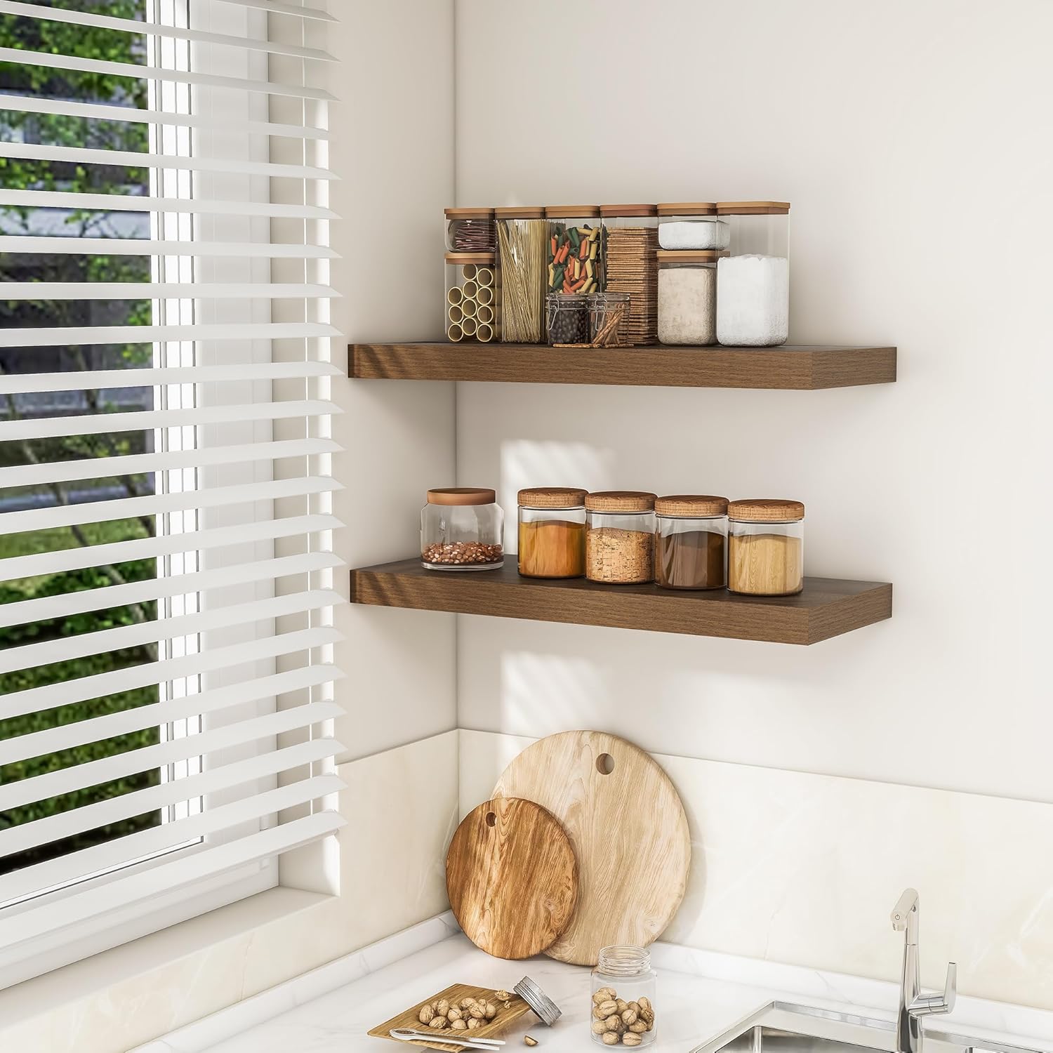 RICHFOCUS 31.5Inch Floating Shelves for Wall 2 Pack Shelves for Bedroom|Kitchen|Bathroom Wall Mounted Rustic Wood Floating Shelf with Invisible Brackets for Books|Storage|Decor, Walnut
