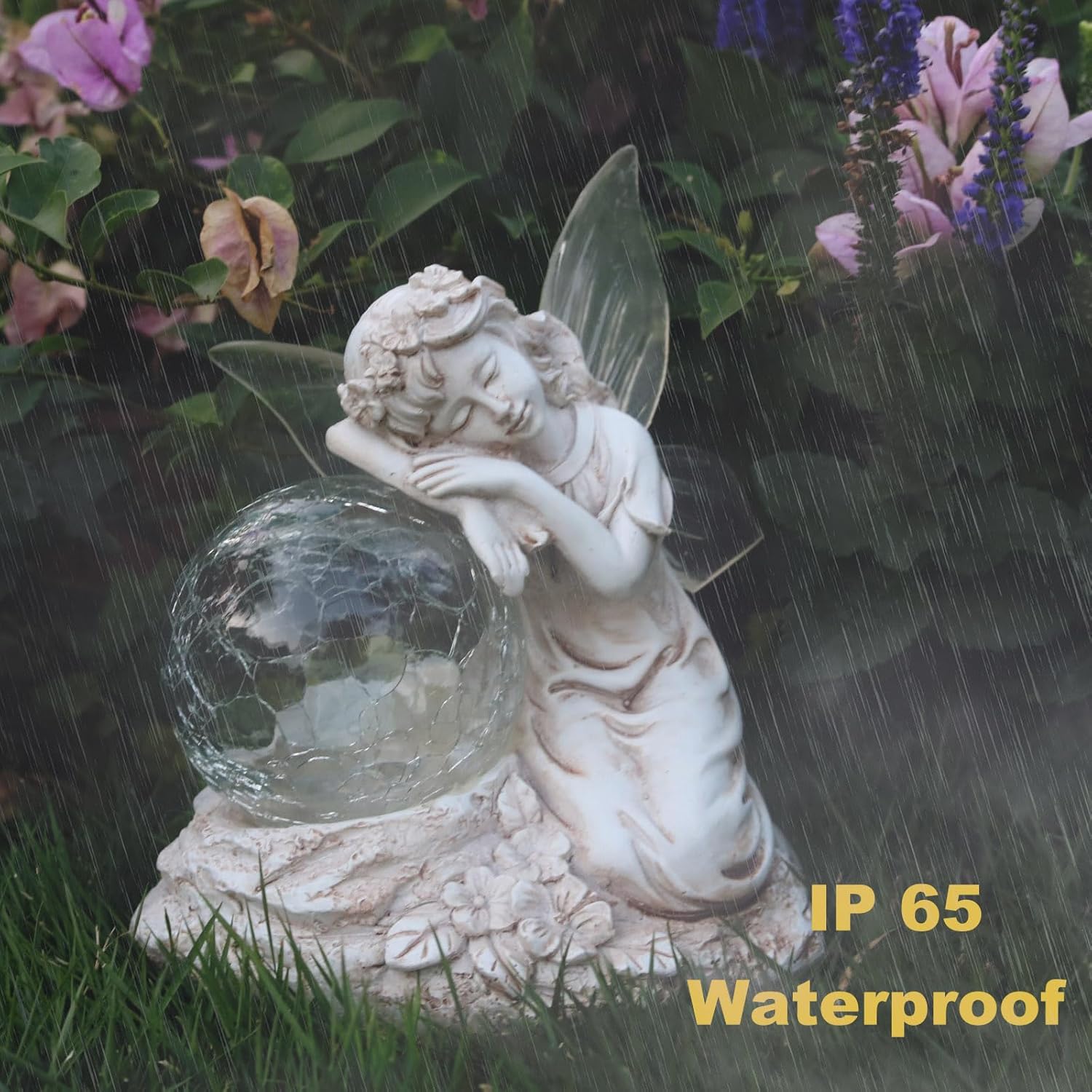 - 【Durable and Waterproof】The solar angle sculpture is made of high quality resin, which is durable and weather resistant. The whole product is IP44 waterproof, So you can place it outside in any weather conditions.