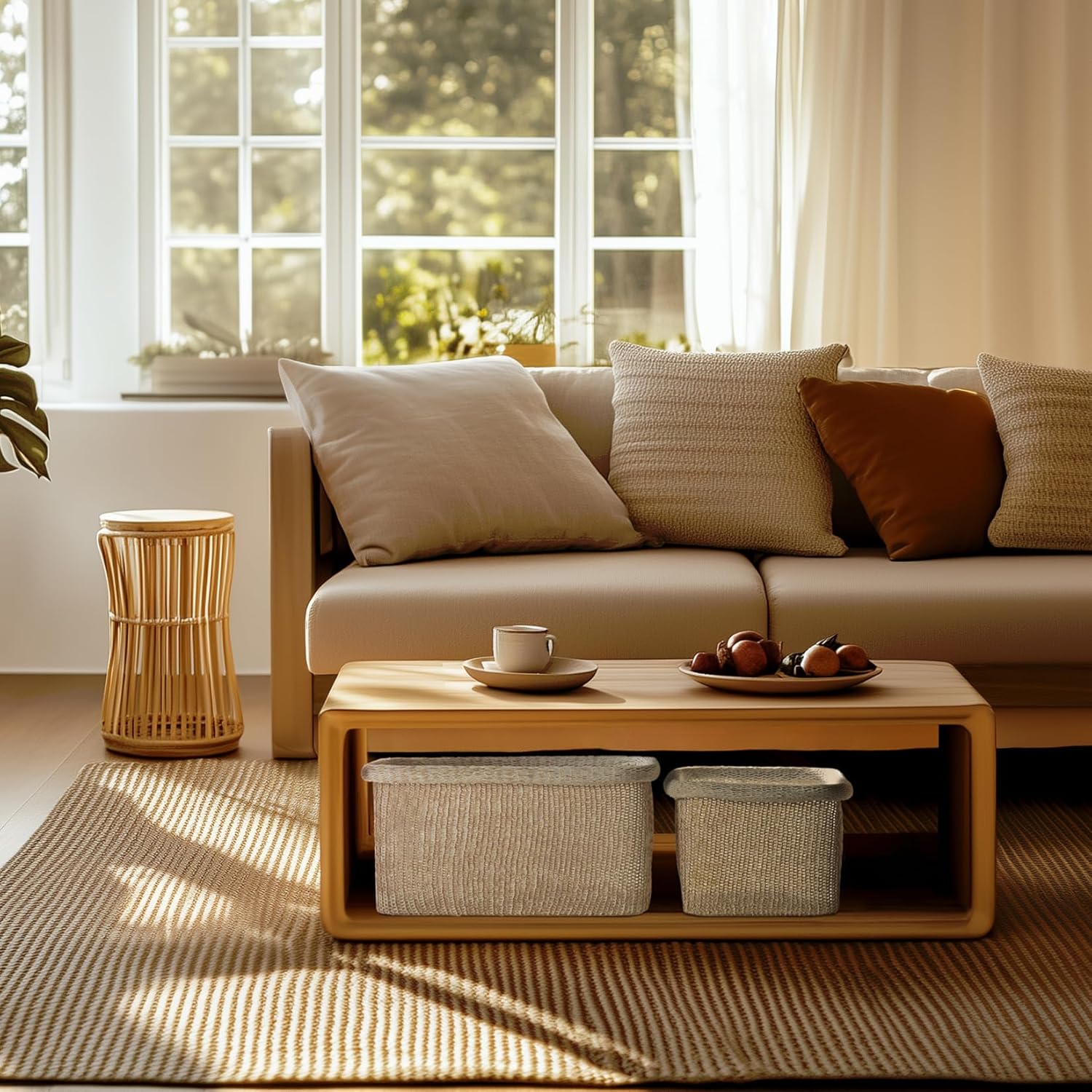 - UNIQUELY CHIC & DELUXE: These fully-knitted masterpieces blend innovative techniques with timeless artistry. The refined yarns and high-tech coating offer a divinely soft, sturdy texture that holds its shape beautifully. Designed for entryways, shelves, and countertops, these stackable baskets provide effortless organization with a modern, elegant touch