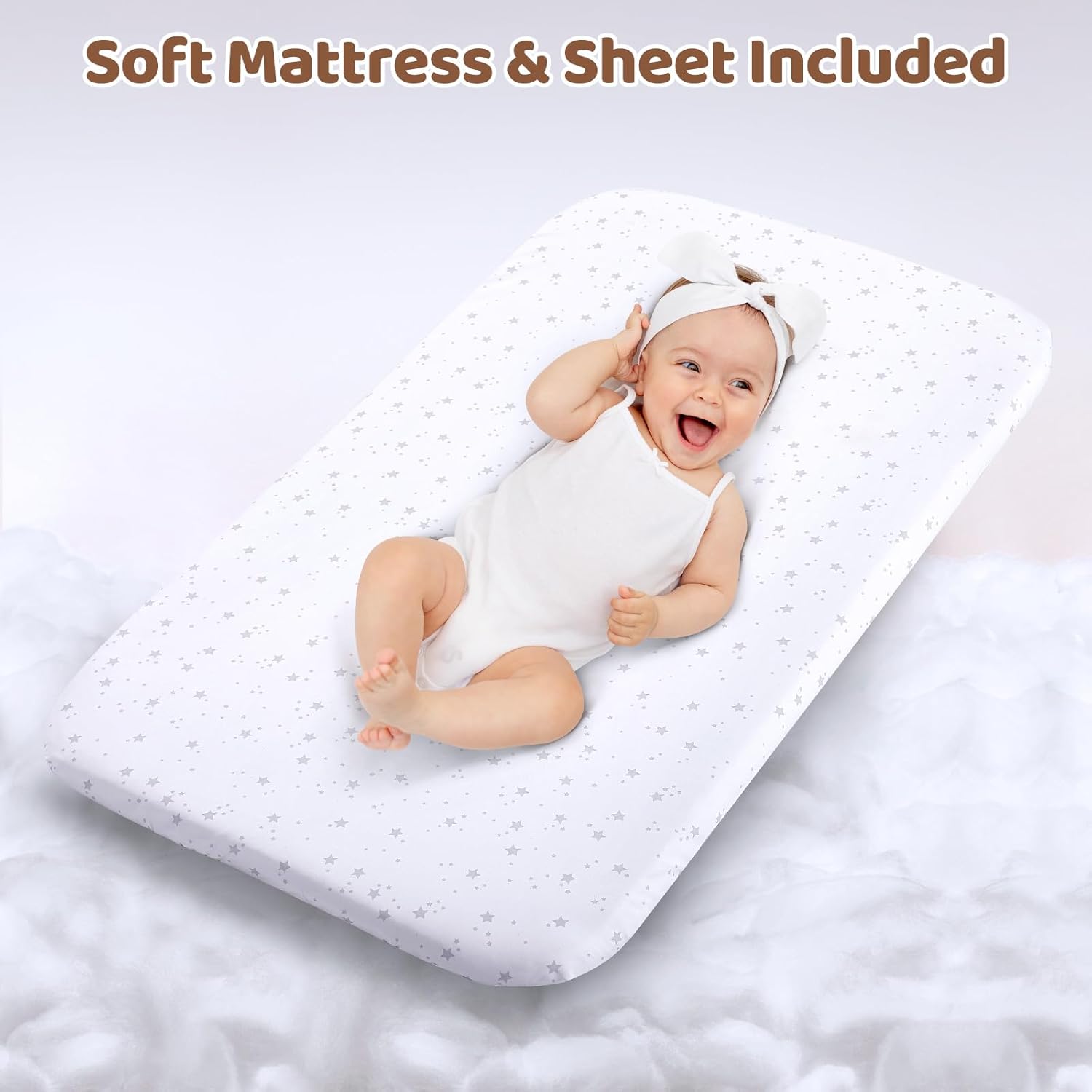 - 【Baby Bassinet with Wheels】 The baby bassinets bedside sleeper is equipped with four lockable 360°swiveled wheels, allowing for easy mobility around bedrooms and living rooms.