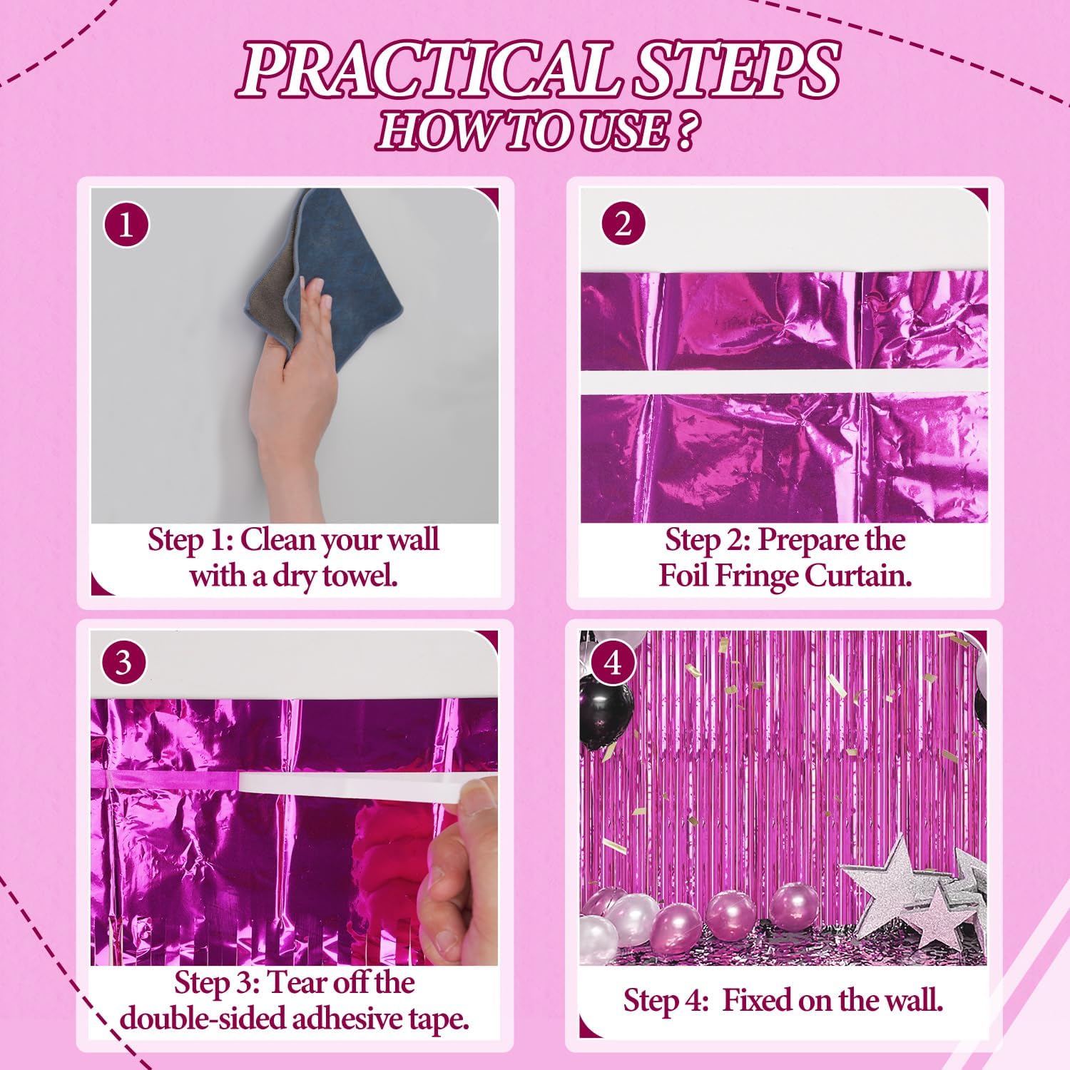 - 【3 Sets of Foil Fringe Curtains】Each package includes 3 sets of 3.3x8.2 ft foil fringe curtains, providing enough length to decorate your party with ease. Perfect for creating a stunning backdrop for any occasion.
