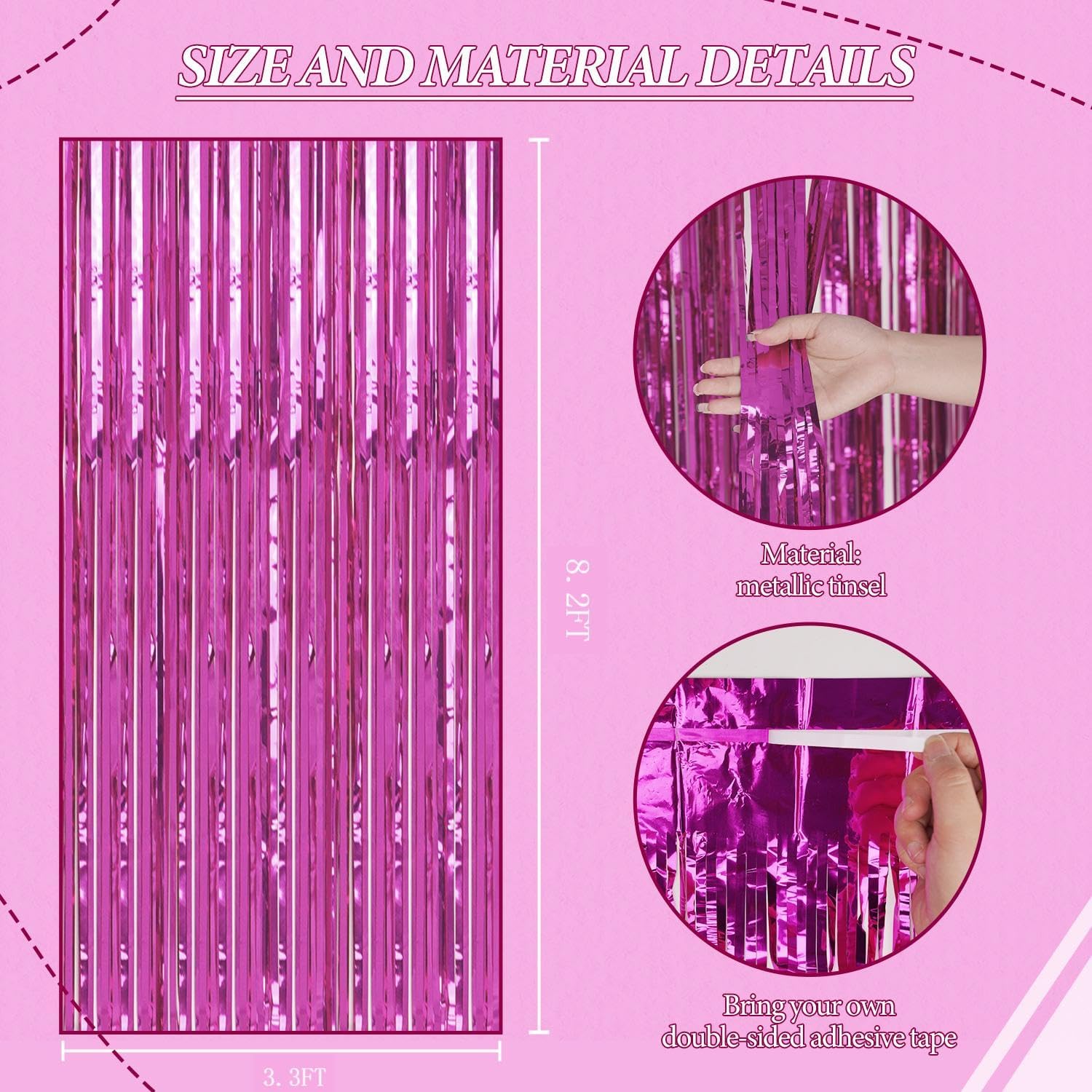 3 Pack Foil Fringe Backdrop - Hot Pink Shiny Tinsel Curtains for Party Decoration/Photo Booth Props - 3.3x8.2 FT Metallic Foil Backdrop for Birthday, Wedding, Graduation, Christmas.
