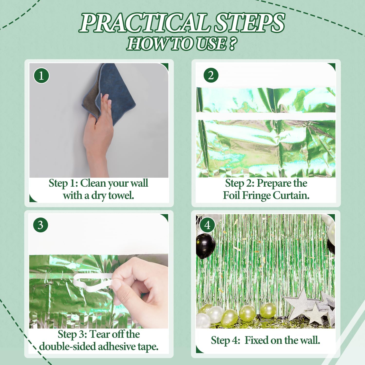 - 【Easy and Convenient Installation】These foil fringe curtains are easy to install and can be quickly hung on smooth surfaces using the included double-sided adhesive tape. No extra tools or materials required.