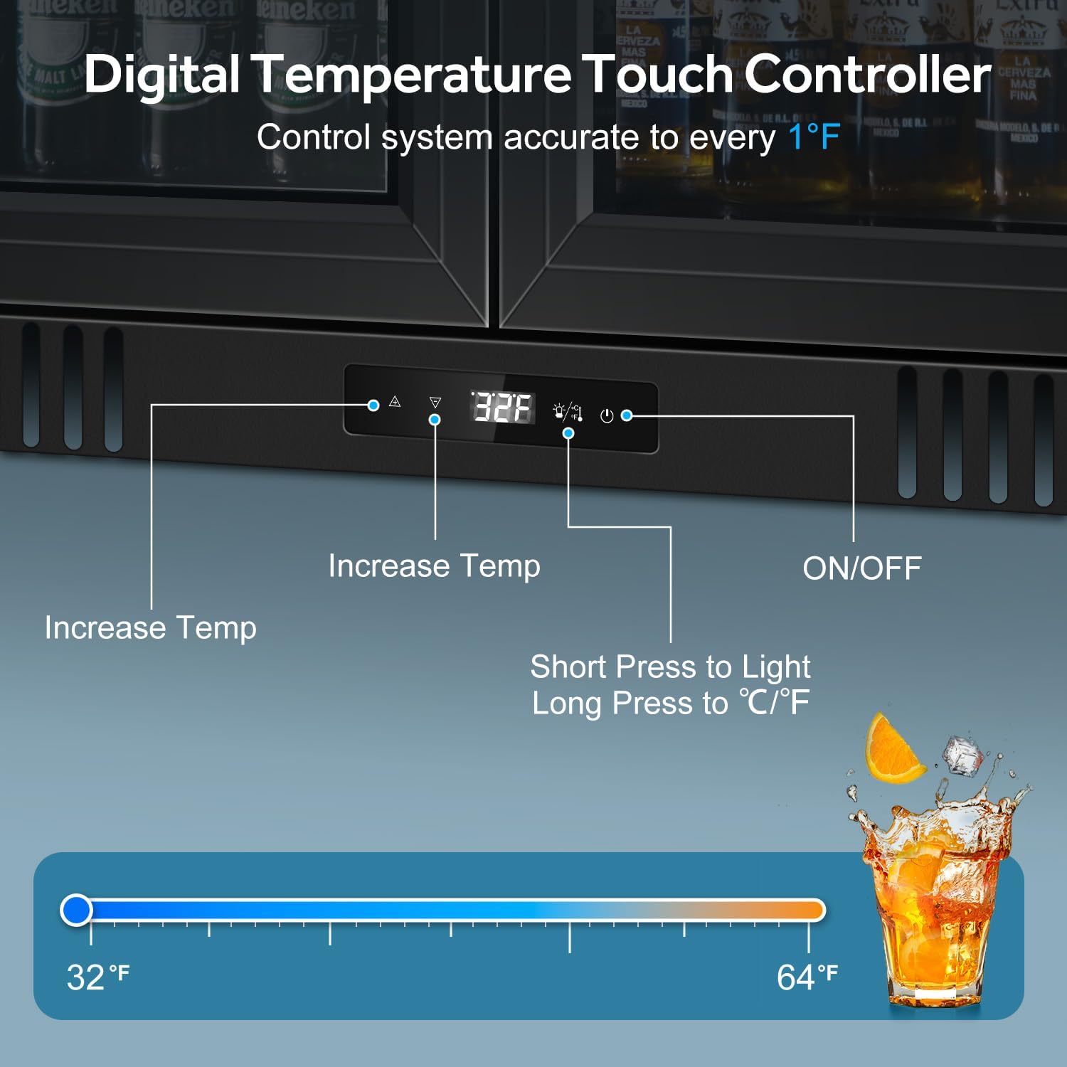 - 【Generous Capacity】With a spacious 7.2 Cu Ft interior, the dimensions of this display refrigerator are 20.66"D x 35.43"W x 35.23"H, accommodating up to 216 standard 12 oz cans