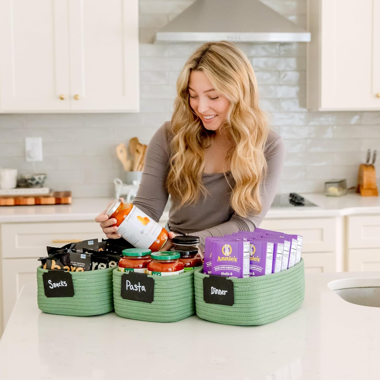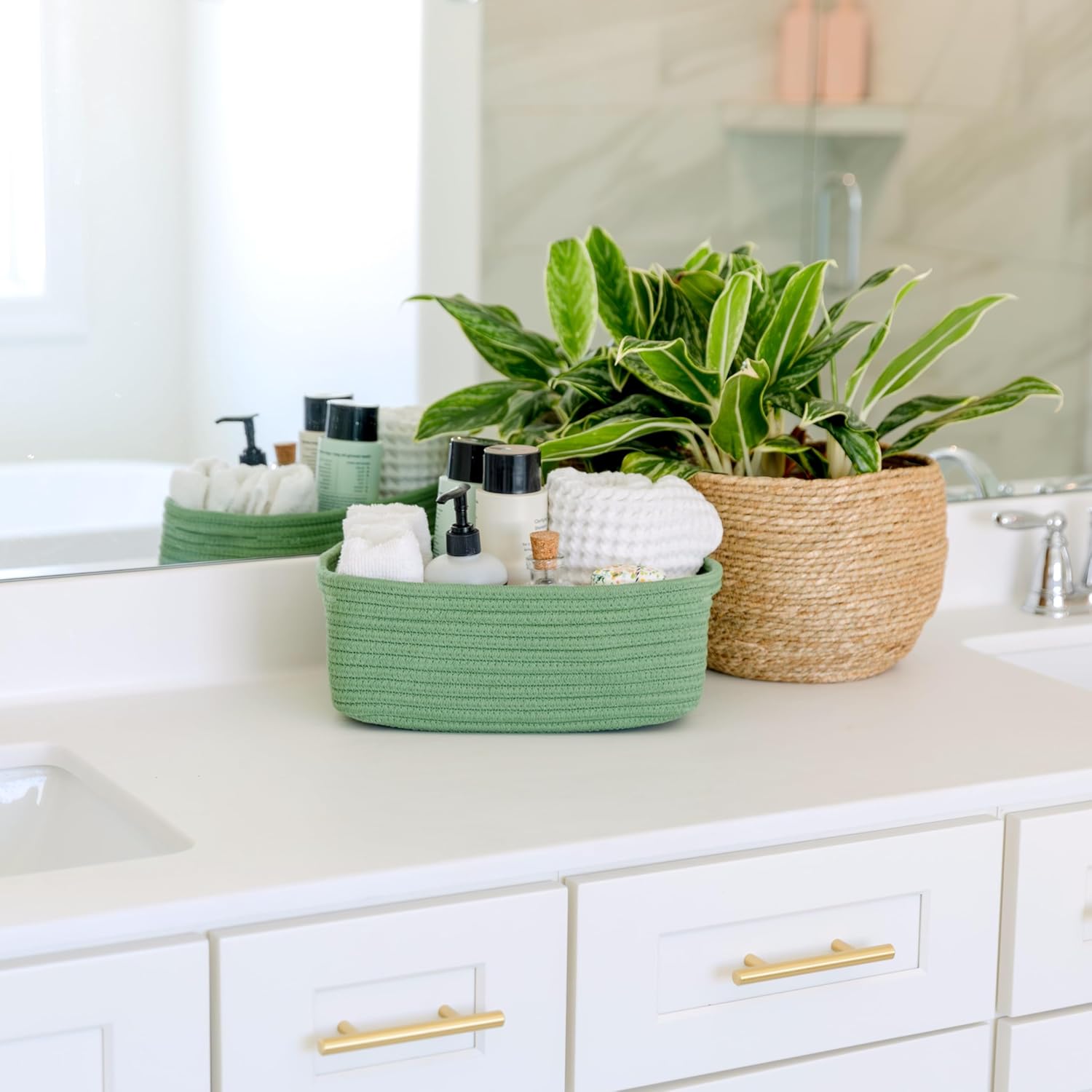 - Safe, Natural Cotton Organizer Bins: Crafted from the highest quality material in the market, our storage bins are oh-so-sturdy (and cute) and ready to take on little humans. They’re 100% safe, so you can rest easy if teething toddlers take a nibble. Reinforced Hidden Handles: Now you see ‘em, now you don’t! With completely hidden handles that blend seamlessly into the rope basket, you’ll be the Houdini of home organizing. They’re even double-stitched and reinforced for extra heavy loads!