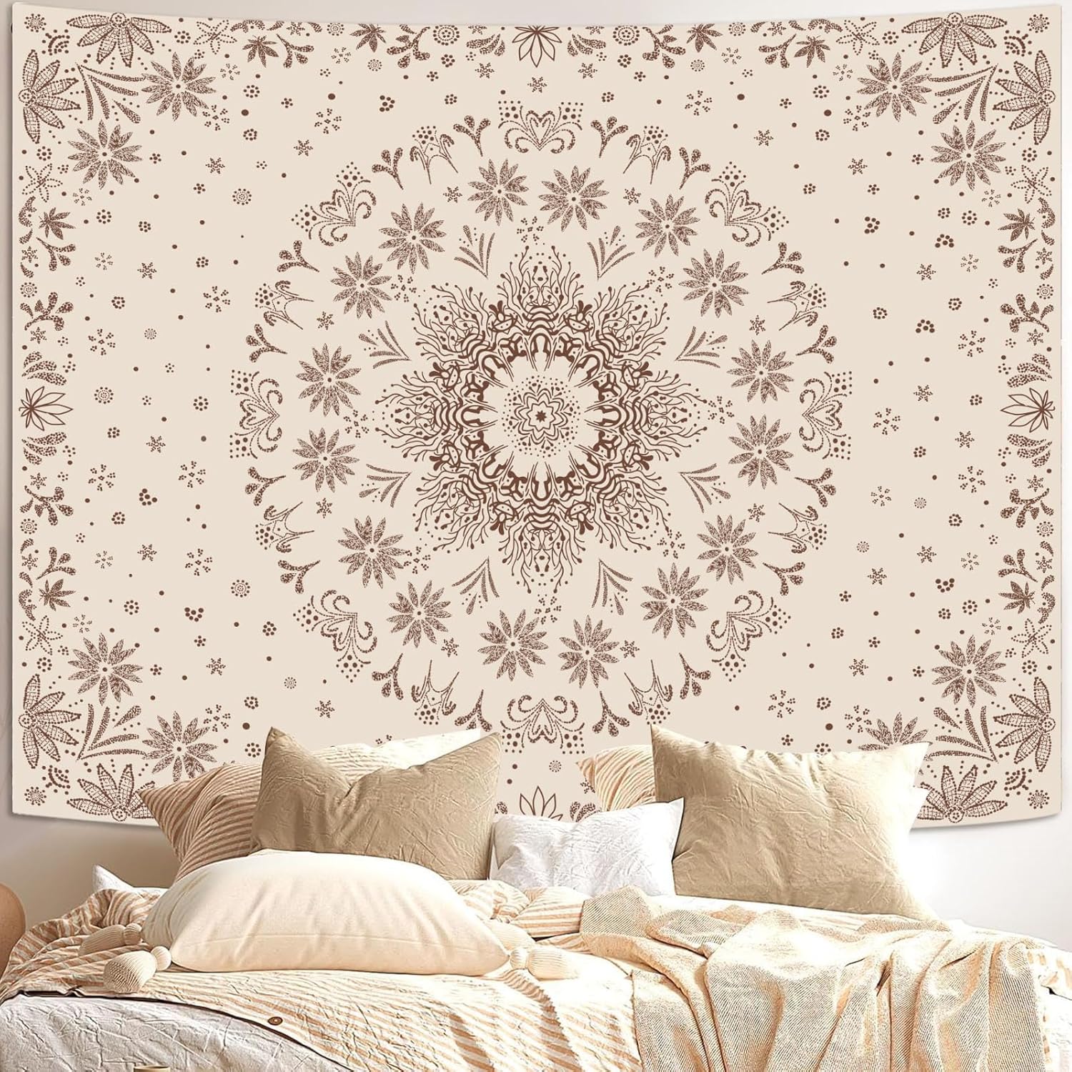 Fowocu Boho Floral Mandala Tapestry Wall Hanging Bohemian Flower Medallion Tapestry Aesthetic Beige Brown Hippie Indian Small Tapestries for Bedroom Living Room Dorm Decor 40 x 30 Inch