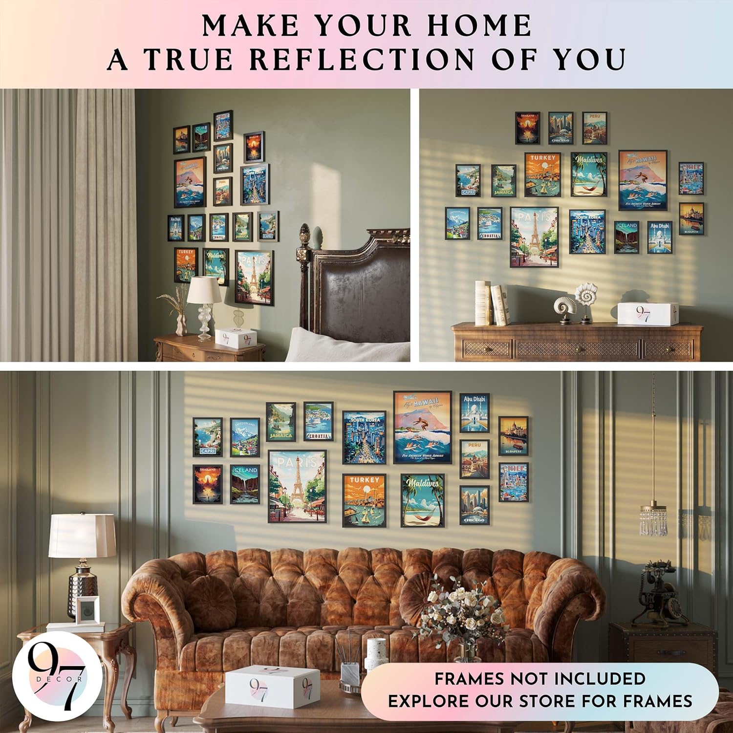 - Travel Poster: Dive into the allure of exploration with our vintage city posters set, featuring 2 Pcs 11x14", 3 Pcs 8x10, 11 Pcs 5x7. This collection brings the world to your walls with its vibrant depiction of travel wall decor and travel wall art.