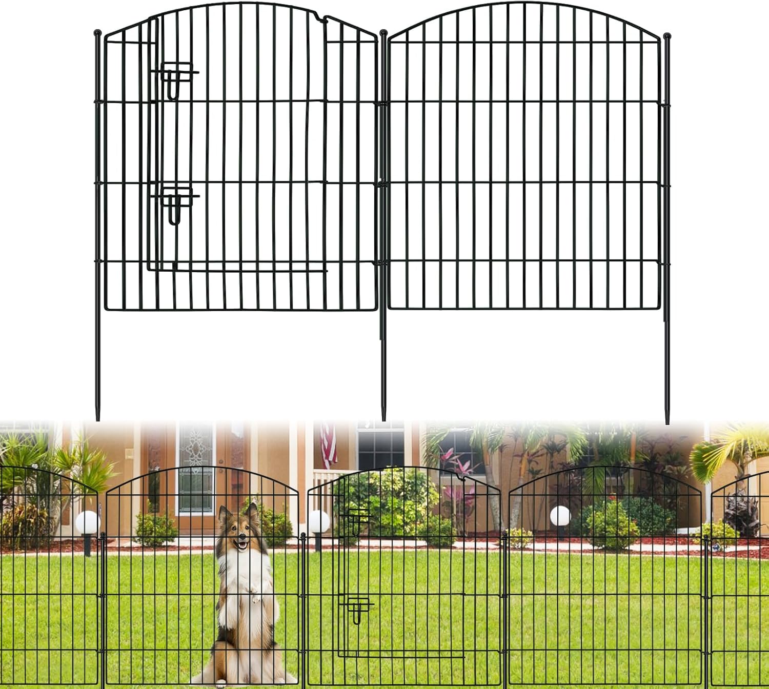 No Dig Decorative Garden Fence with Gate 32in (H) x 24ft (L), 9 Panels + 1 Gate +11 Stakes, Temporary Dog Fencing Outdoor, Rustproof Metal Arched Animal Barrier for Yard, Patio, Flower Bed, Landscape