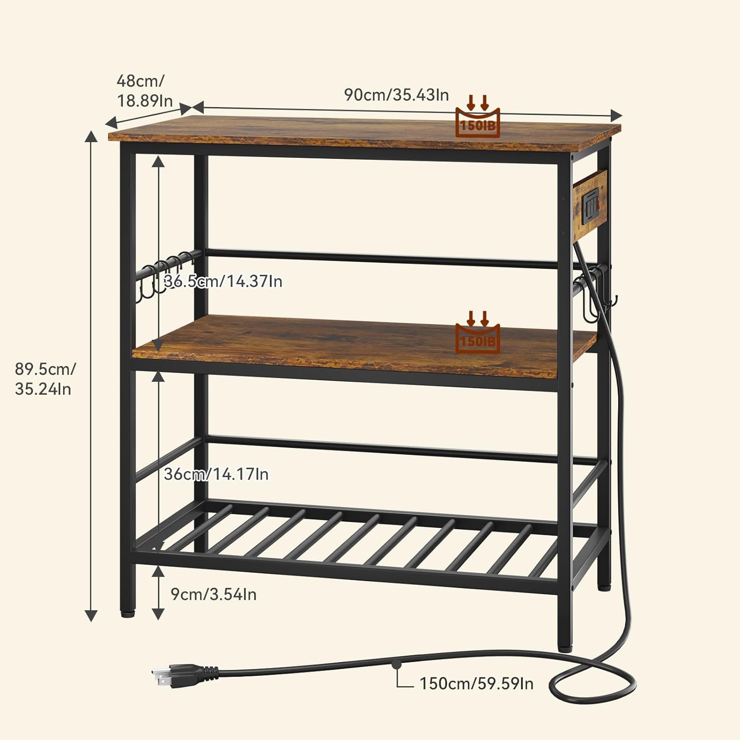 IBUYKE Kitchen Island with Storage, Bakers Rack with Power Outlet,Microwave Stand with Large Worktop,Rolling Bar Cart for Home, Outdoor, Kitchen,Rustic Brown and Black TMJ029H