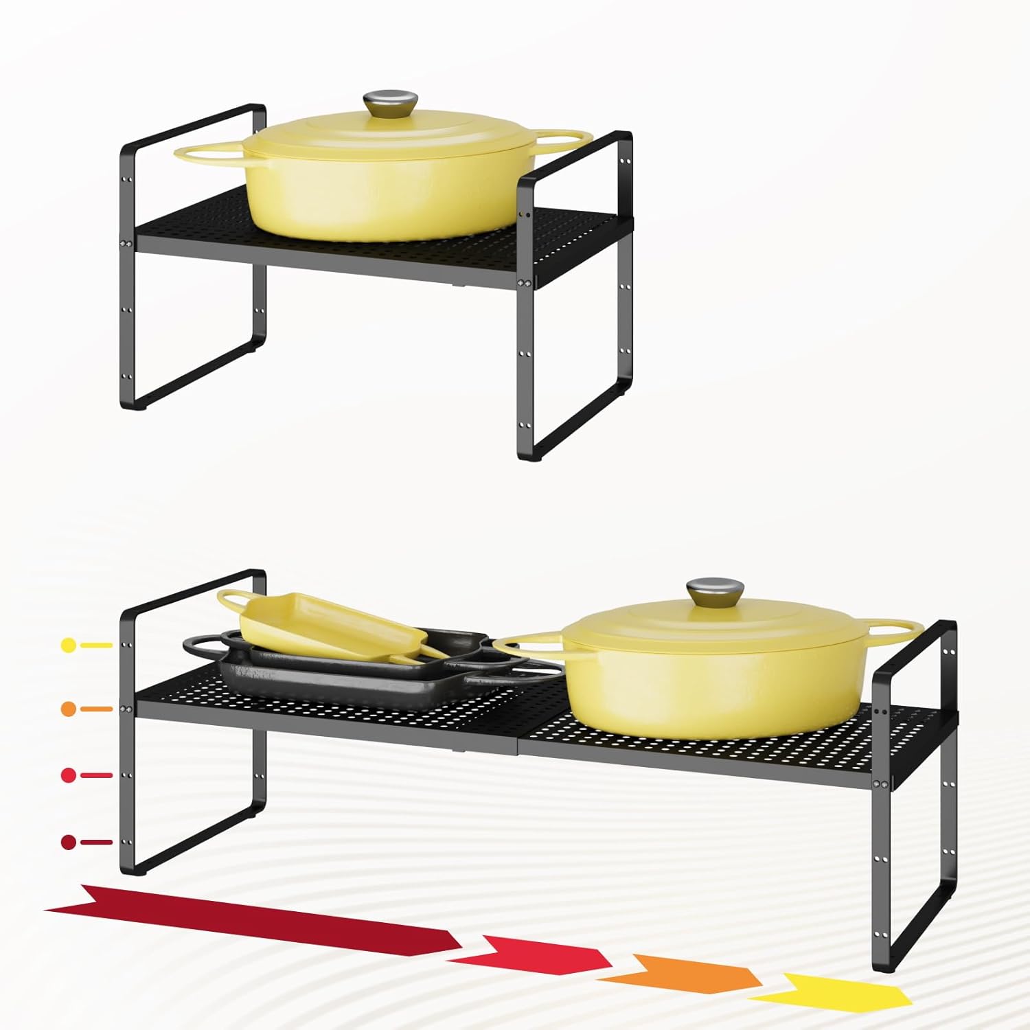 - Expandable and Stackable Shelves:Cabinet organizers choose 4 heights according to the space requirements, kitchen cabinet organizer length from 16.5"-27" free and thorough change, enjoy the fun of storage. Spice rack stacking design, greater increase your storage space.