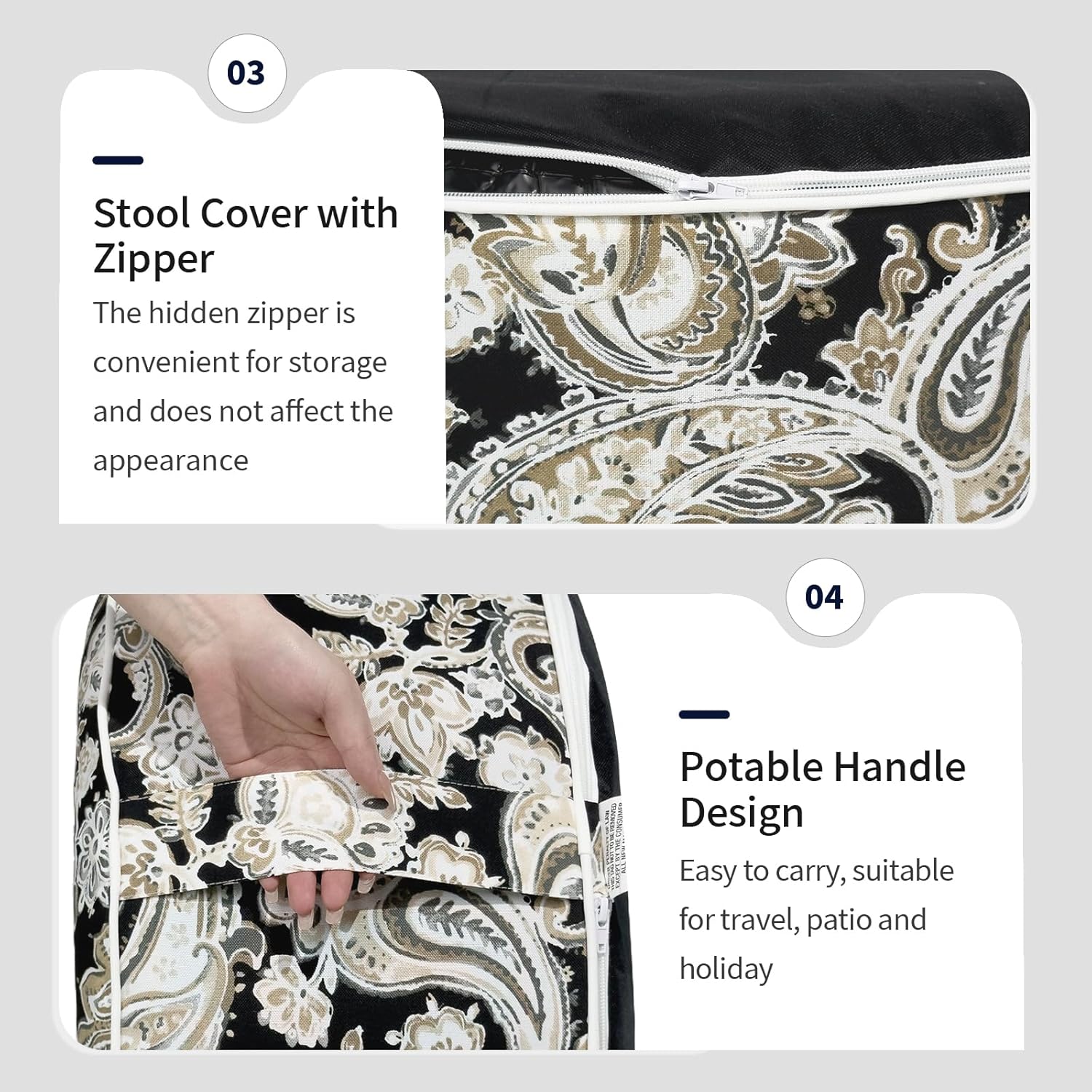 Inflatable Ottoman Stool D21 xH9 for Outdoor/Indoor Use, Water Repellent Patio Foot Rest Stool with Portable Handle,Round Pouf Ottoman Suitable for Garden,Deck and Camping - Paisley Black