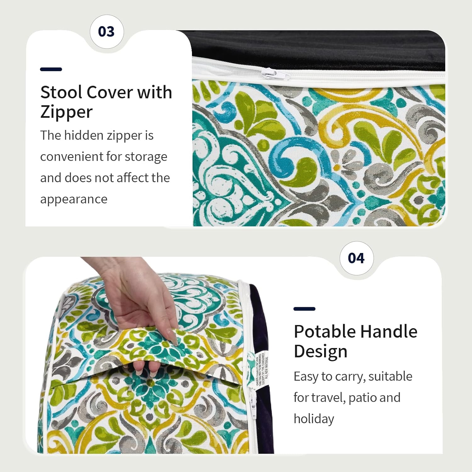 Inflatable Ottoman Stool D31 xH14 for Outdoor/Indoor Use, Water Repellent Patio Foot Rest Stool with Portable Handle,Round Pouf Ottoman Suitable for Garden,Deck and Camping - Damask Green