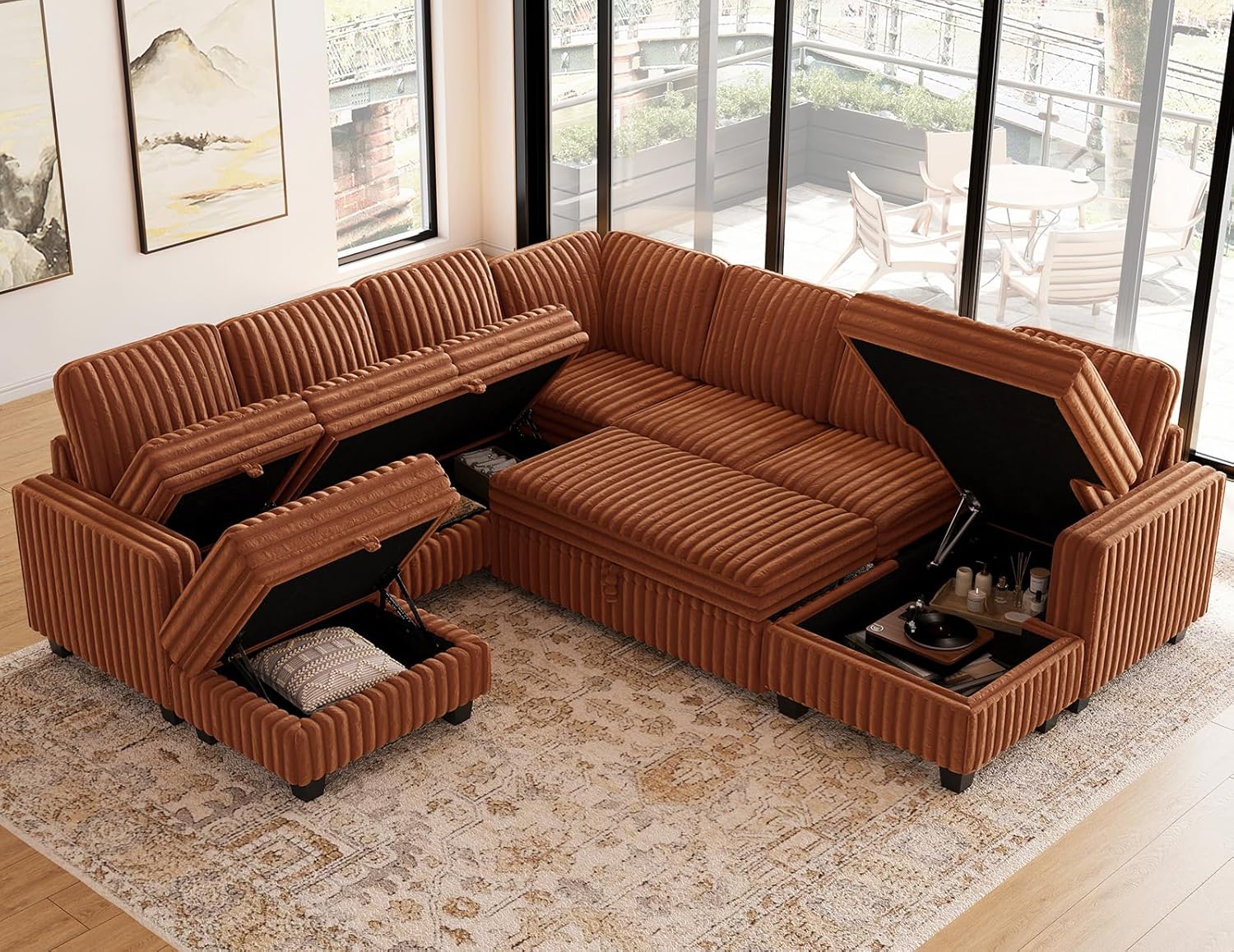 - Storage Seats: Sectional couch with storage. All sections feature storage compartments, offering more than just seating, it’s a smart way to store everyday or seasonal items, ensuring everything is easily accessible and your room stays neat