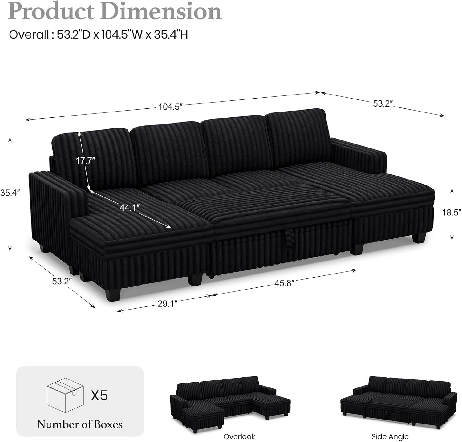 - Easy Assembly: Assembly of this modular sectional pull out sofa is effortless. The corduroy sectional sofa is conveniently packaged in 5 boxes, which may occasionally be delivered on separate days
