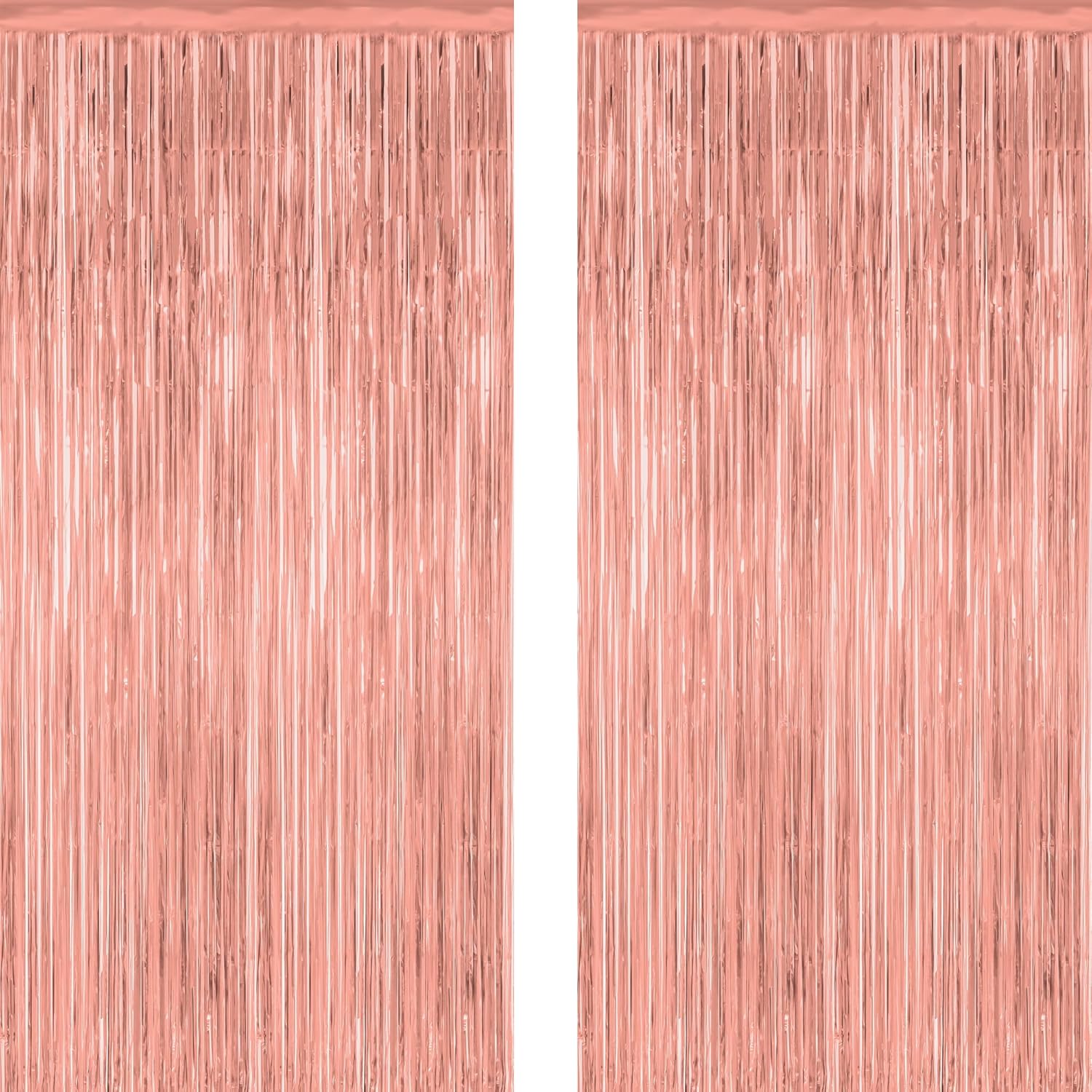 2 Pack Rose Gold Decorations, 3.28 FT x 7.05 FT Rose Gold Fringe Curtains, Metallic Photo Backdrop Tinsel Backdrop Foil Curtains, Metallic Party Supplies Wedding Decor