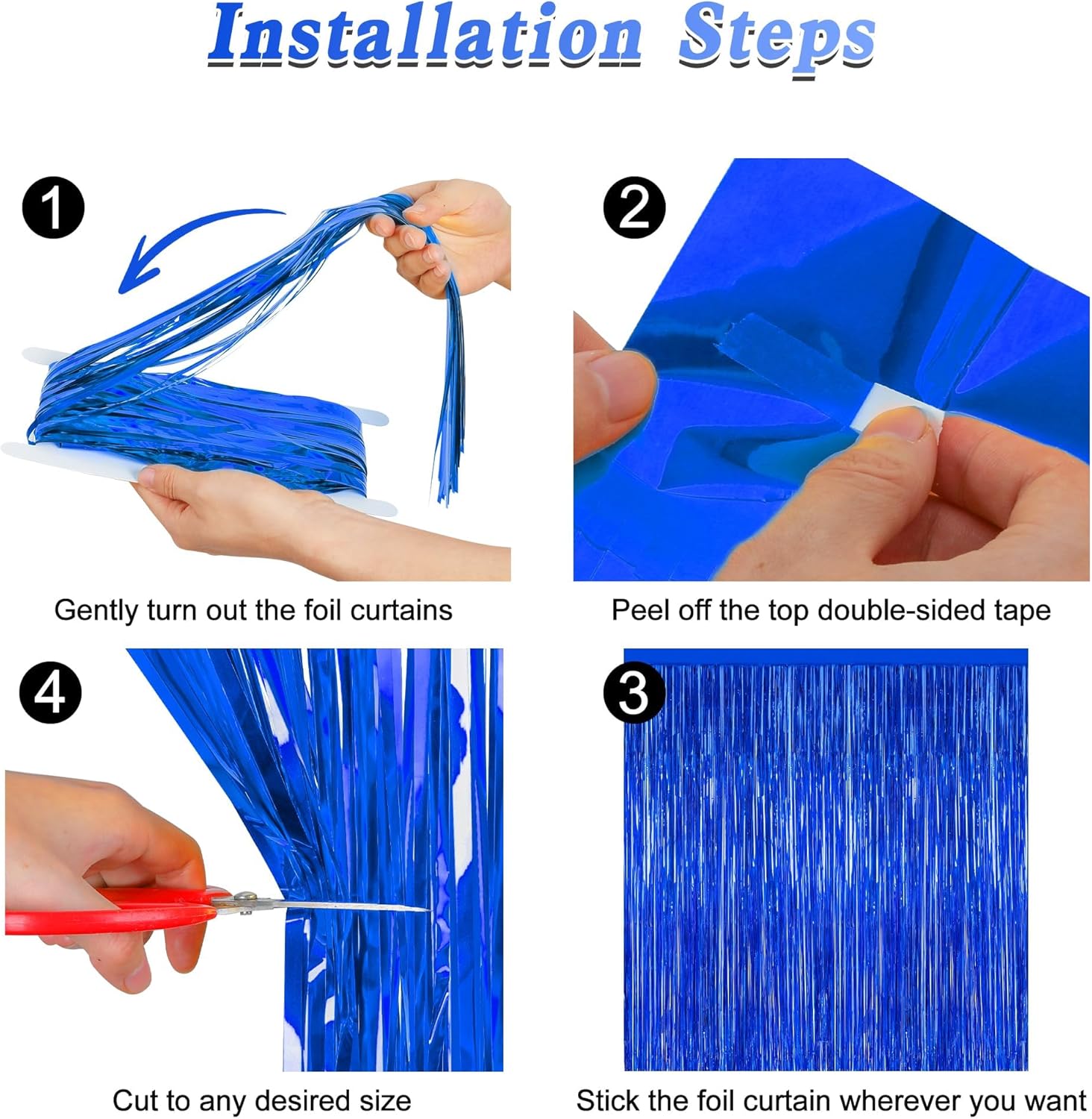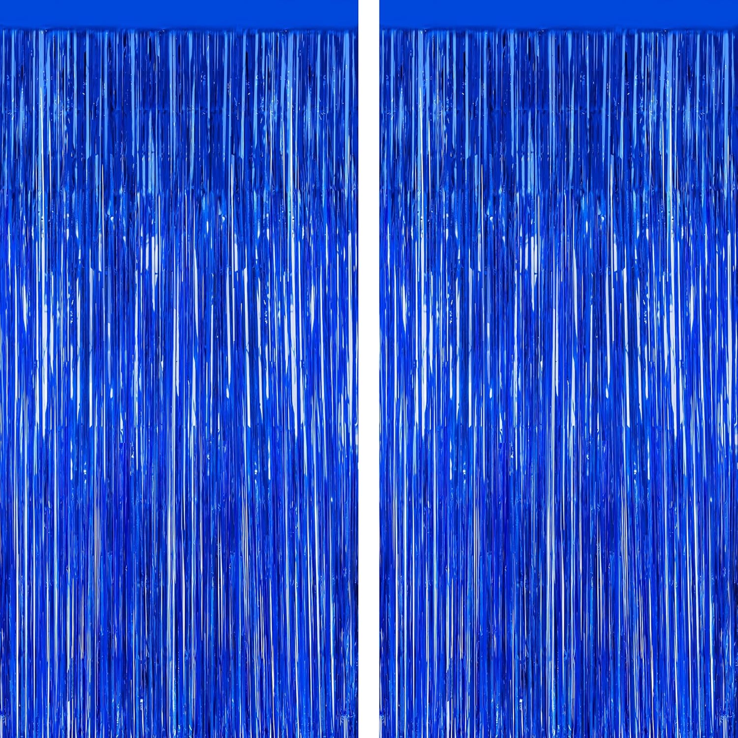 - Package Contents: This set includes 2 pack dark blue foil fringe curtains, each measuring 3.28 x 7.05 feet. The tinsel curtain backdrop can be easily cut to any length to suit your specific needs.