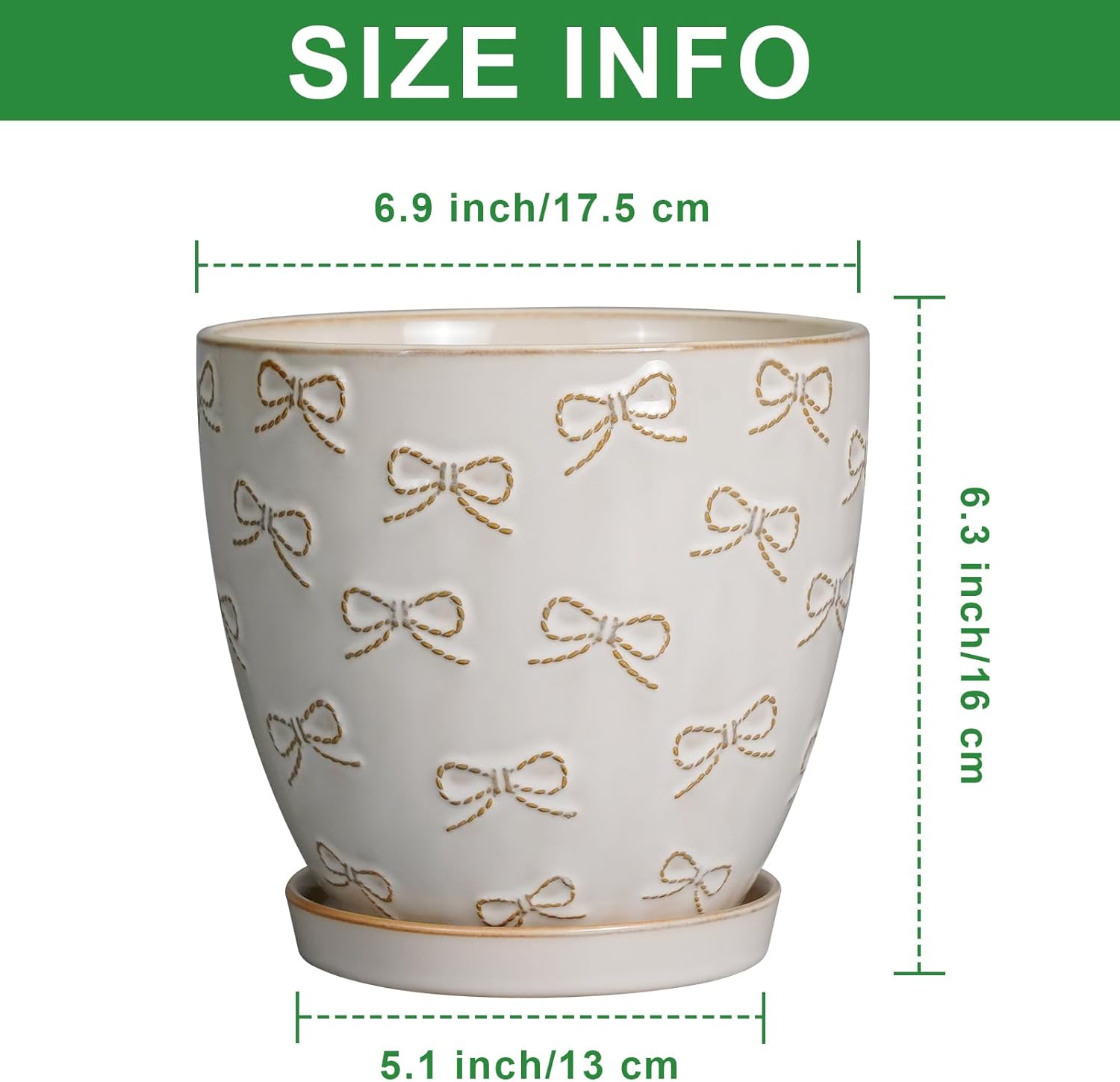 - Stylish Appearance: Our ceramic plant pot has a white main colour, a beautiful embossed bow tie pattern on the surface, elegant appearance making it ideal for home decor, garden decor and office decor
