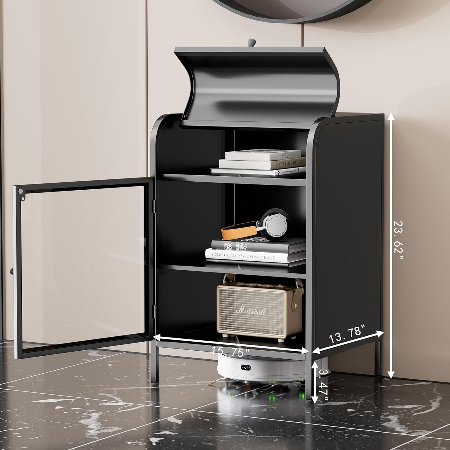 Modern Metal Side Tables, End Tables with Glass Door, 2-Tier Nightstands with Storage Shelves, Accent Table, Slim Sofa Table for Living Room, Bedroom (1, Black)