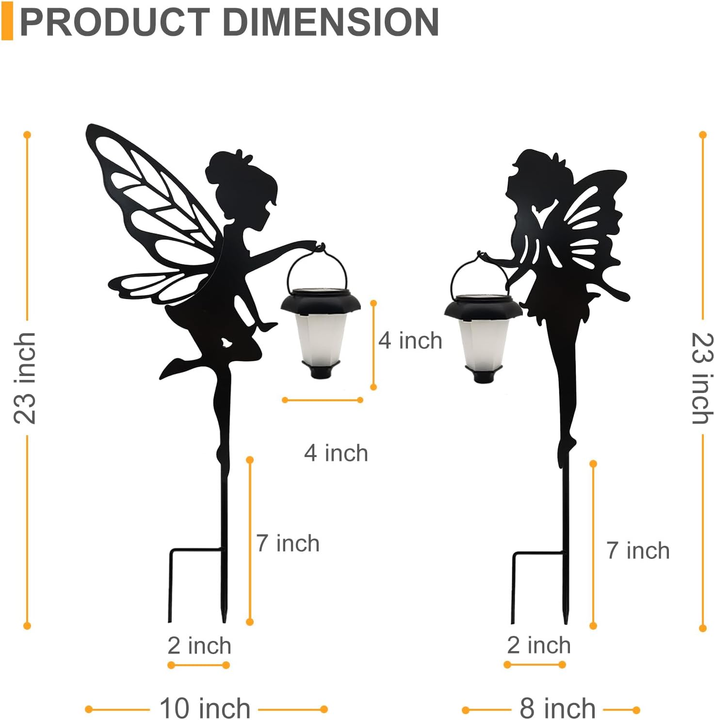- Metal Yard Stake: Our 23” tall fairy stakes are made of durable metal and finished with black powder-coating. It is not easy to fade and rust-resistant for years of quality use in your garden. Adding perfect charm and a boost of color to outdoor space