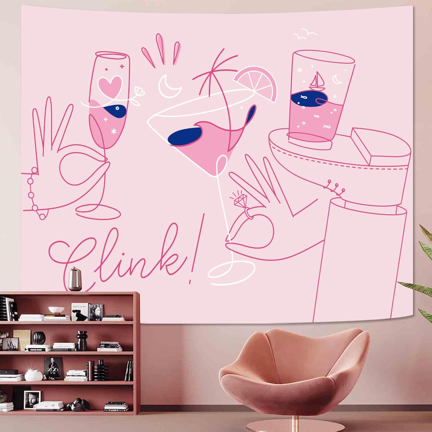 Lunerfex Y2K Tapestry Pink Party Wall Tapestry, Cute Tapestries for Bedroom Funny Tapestries Wall Hanging for Bedroom Living Room Decor Pink-2 44"x60"